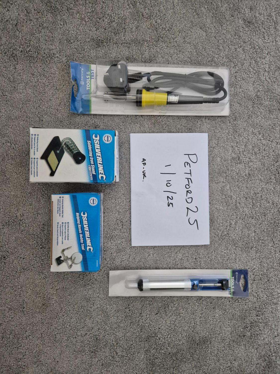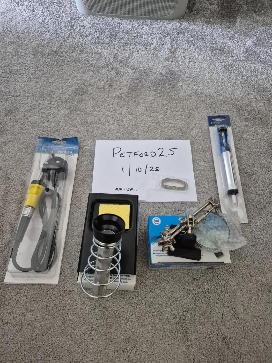 Brand new Soldering Set, including Soldering Iron, Solder Pump, Stand and 'Helping Hands' tool.