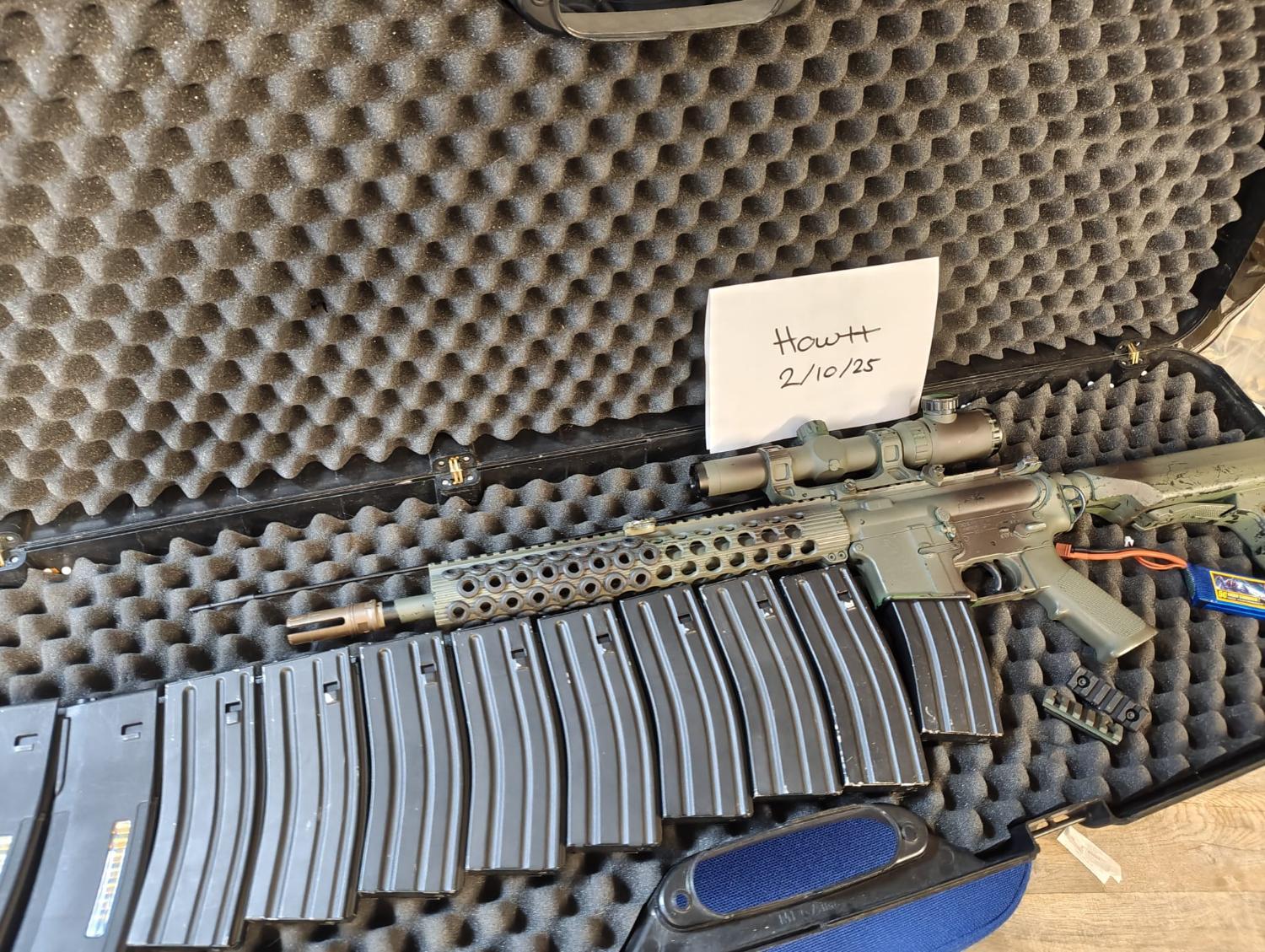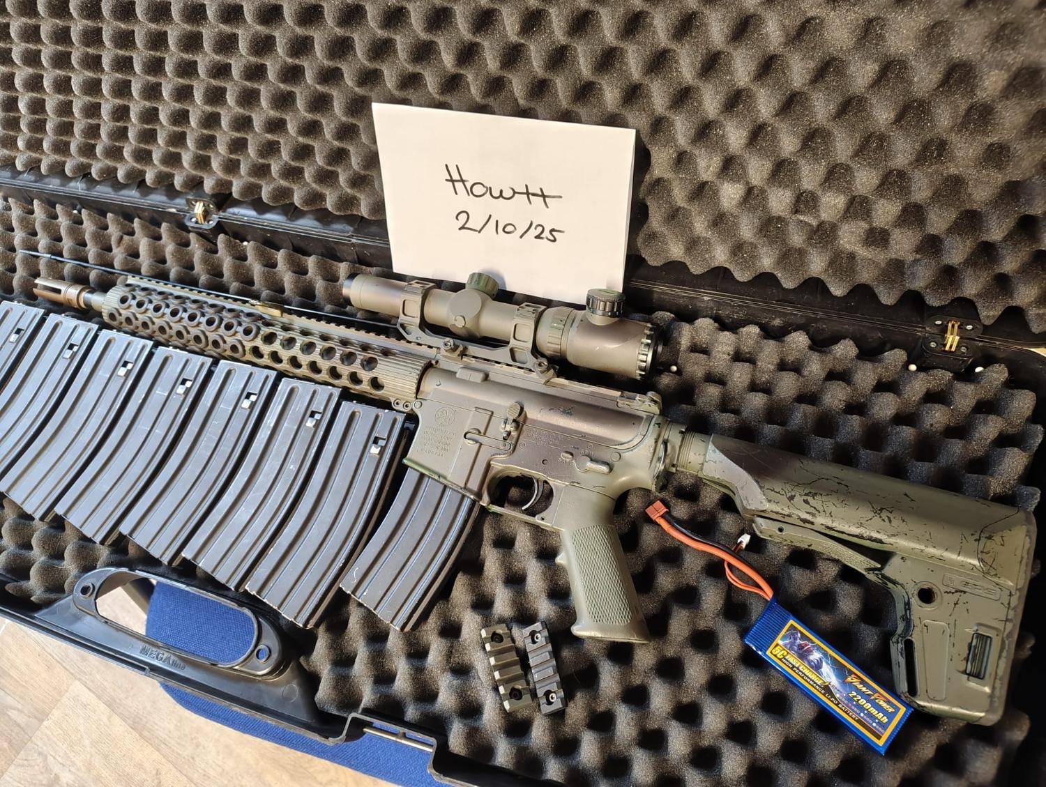Comes with 11 Mags [9 original 2 pts] Vision King Short Dot, Licenced Troy Rail with Official Squid Grips, Hard case [not the best one but its fine for airsoft]