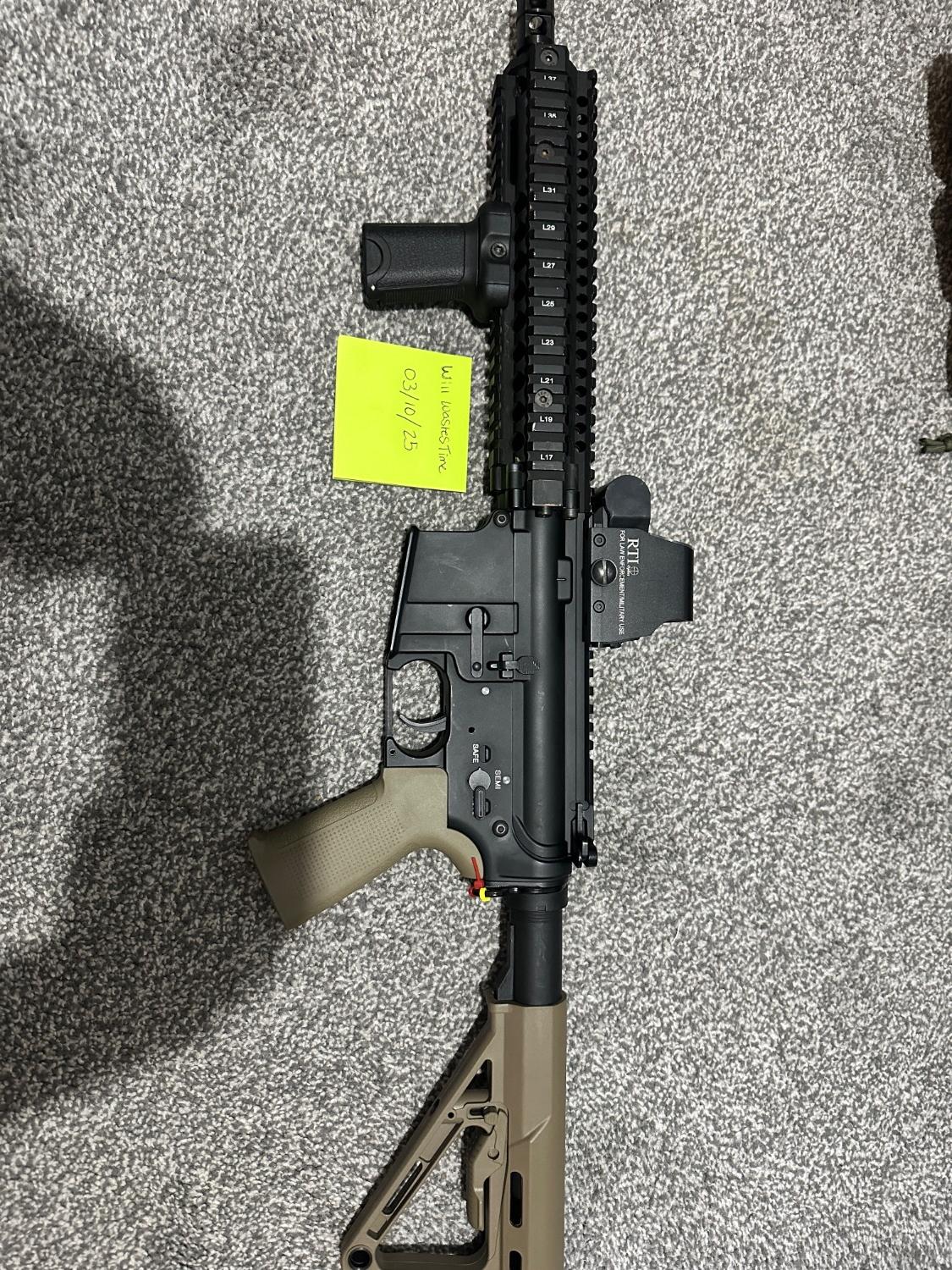 Custom MK18 rifle started life as a specna arms but now has an E&C metal receiver with pts pistol grip, CTR stock and a MK18 Rail system