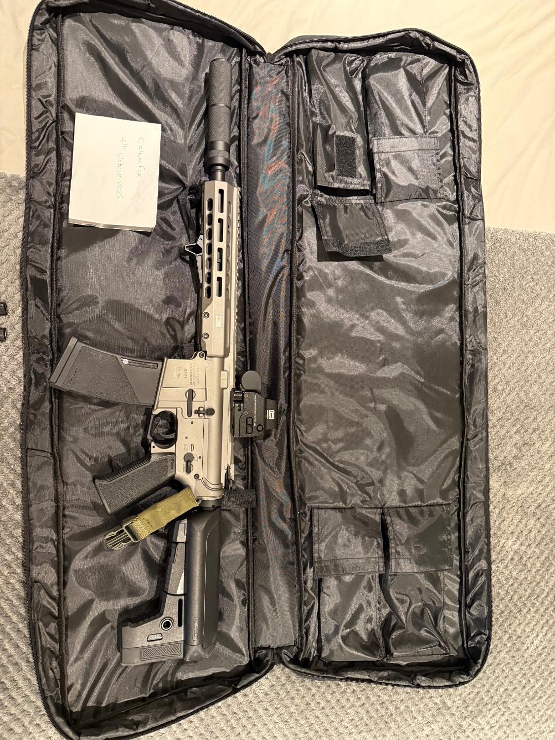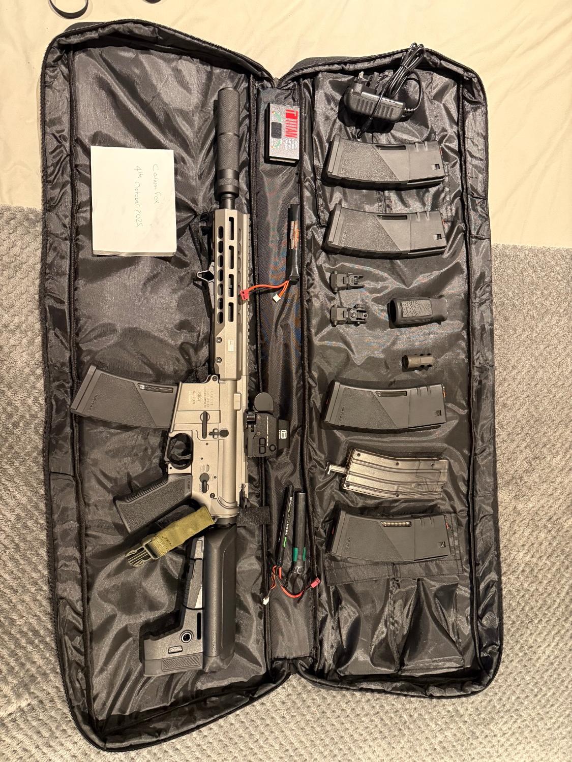 Comes with original box, gun bag, 5x Krytac M4 mags, titan charger, 2 batteries EO Tech red dot, silencer, foregrip, original Barrett muzzle and iron sights.