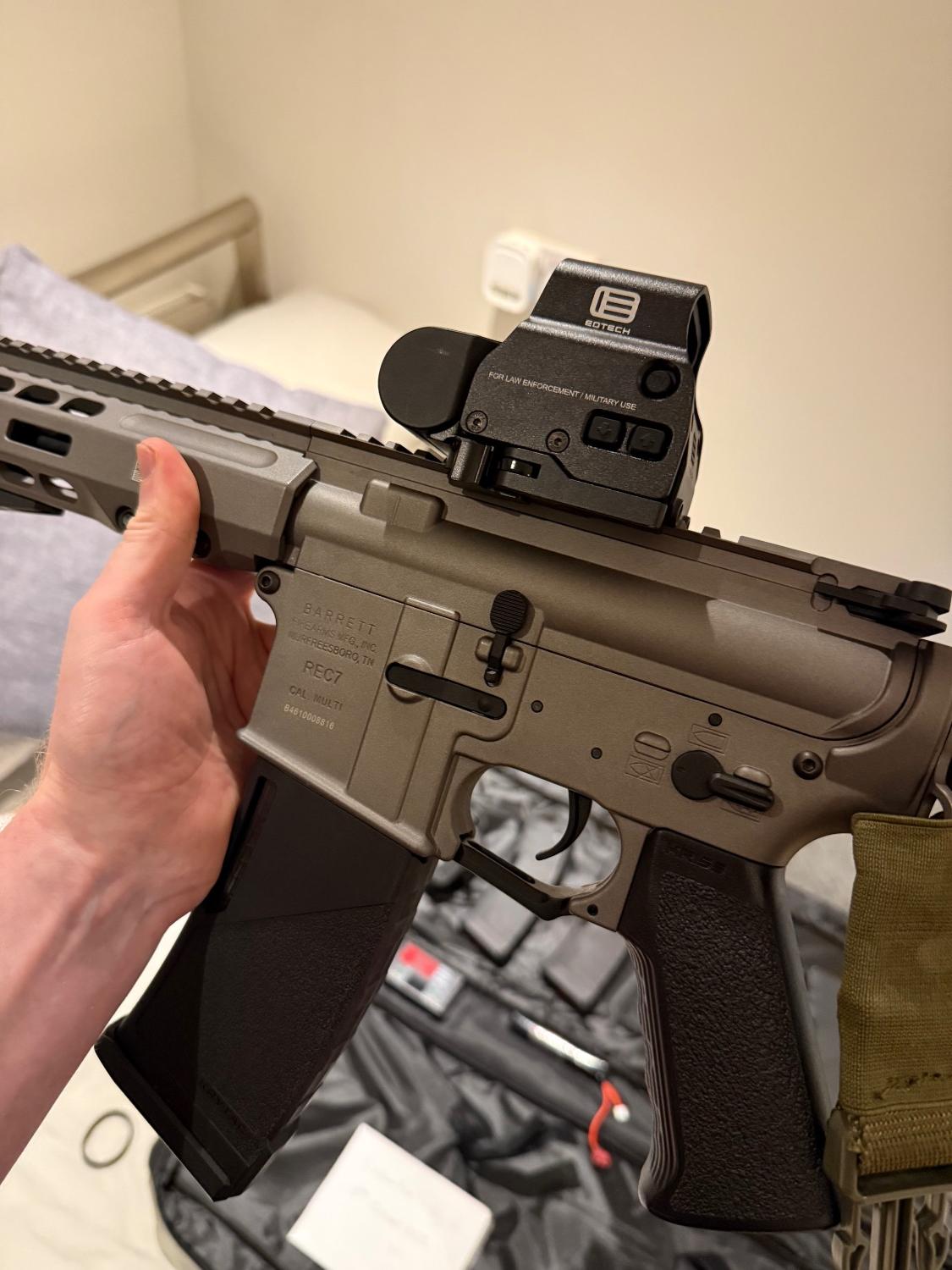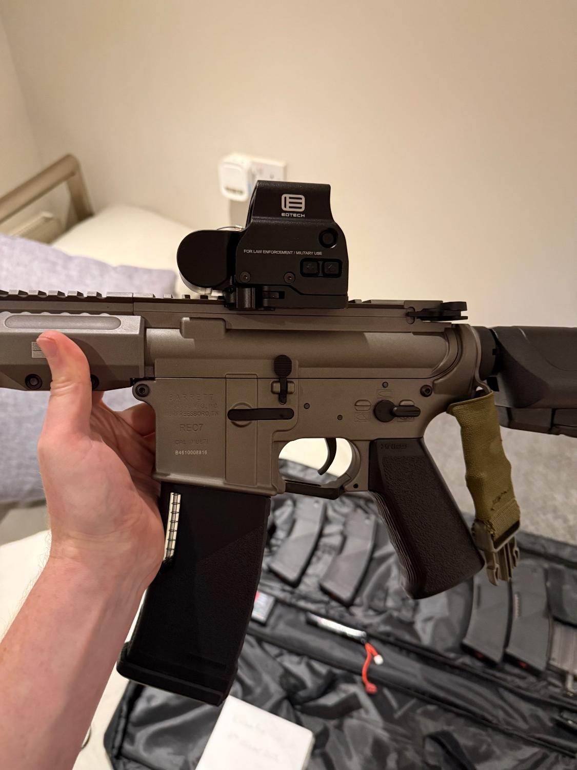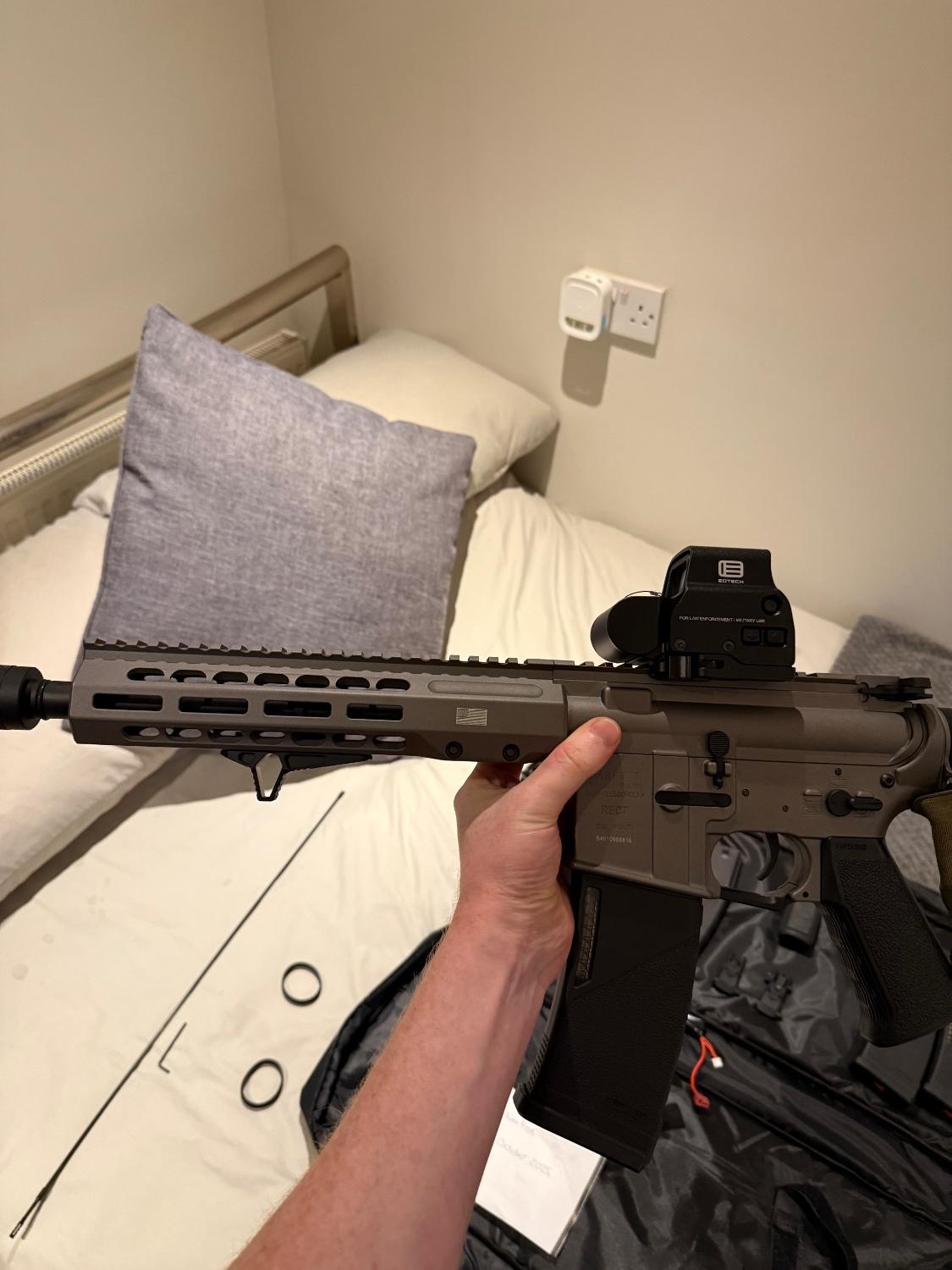 Comes with original box, gun bag, 4x Krytac M4 mags, titan charger, 2 batteries EO Tech red dot, silencer, foregrip, original Barrett muzzle and iron sights