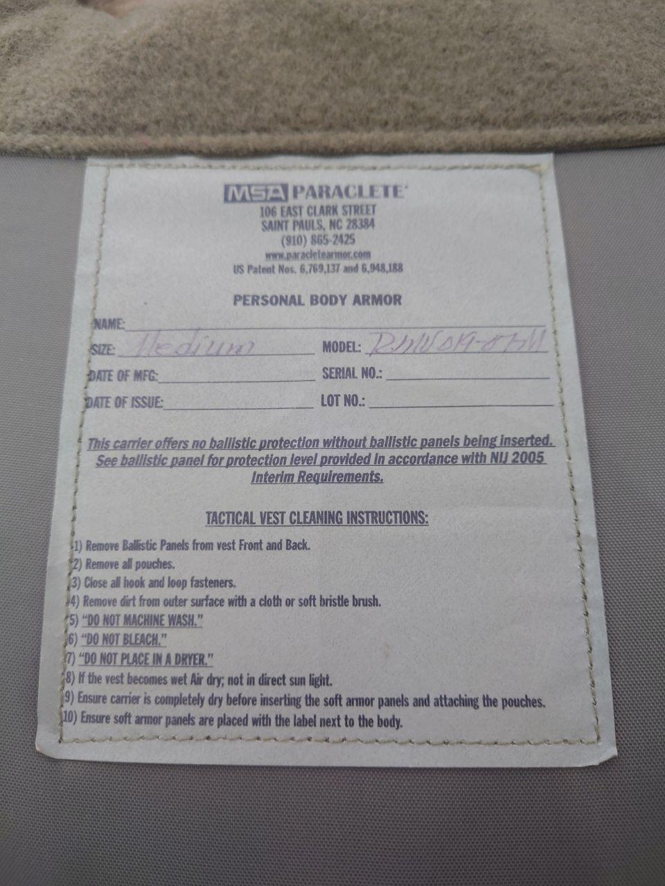 Hello for sale is one medium sized Paraclete RMV plate carrier complete with rear blank PALS panel. For size reference I am 46" chest and this fits fine with plenty of adjustment. It has the soft Kevlar inserts front and back but no other plates or liners. Been used a few times however wear is minimal with exception to a small stain on the top right hand shoulder strap. Perfect for mid to late Task Force Black impression or just a good quality plate carrier in general.