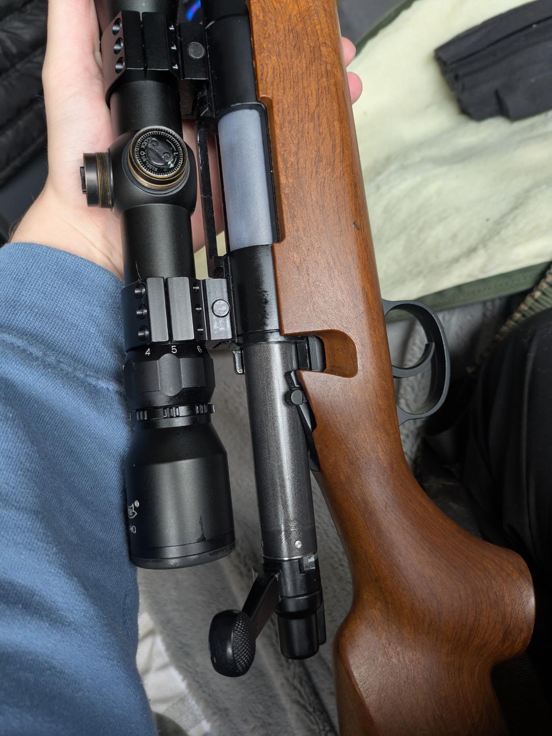 Scope has perspex acrylic insert to protect agaisnt impacts. DIY clyinder cover to stop dirt getting in " ejection port " and improves bolt pull / keeps grease i.