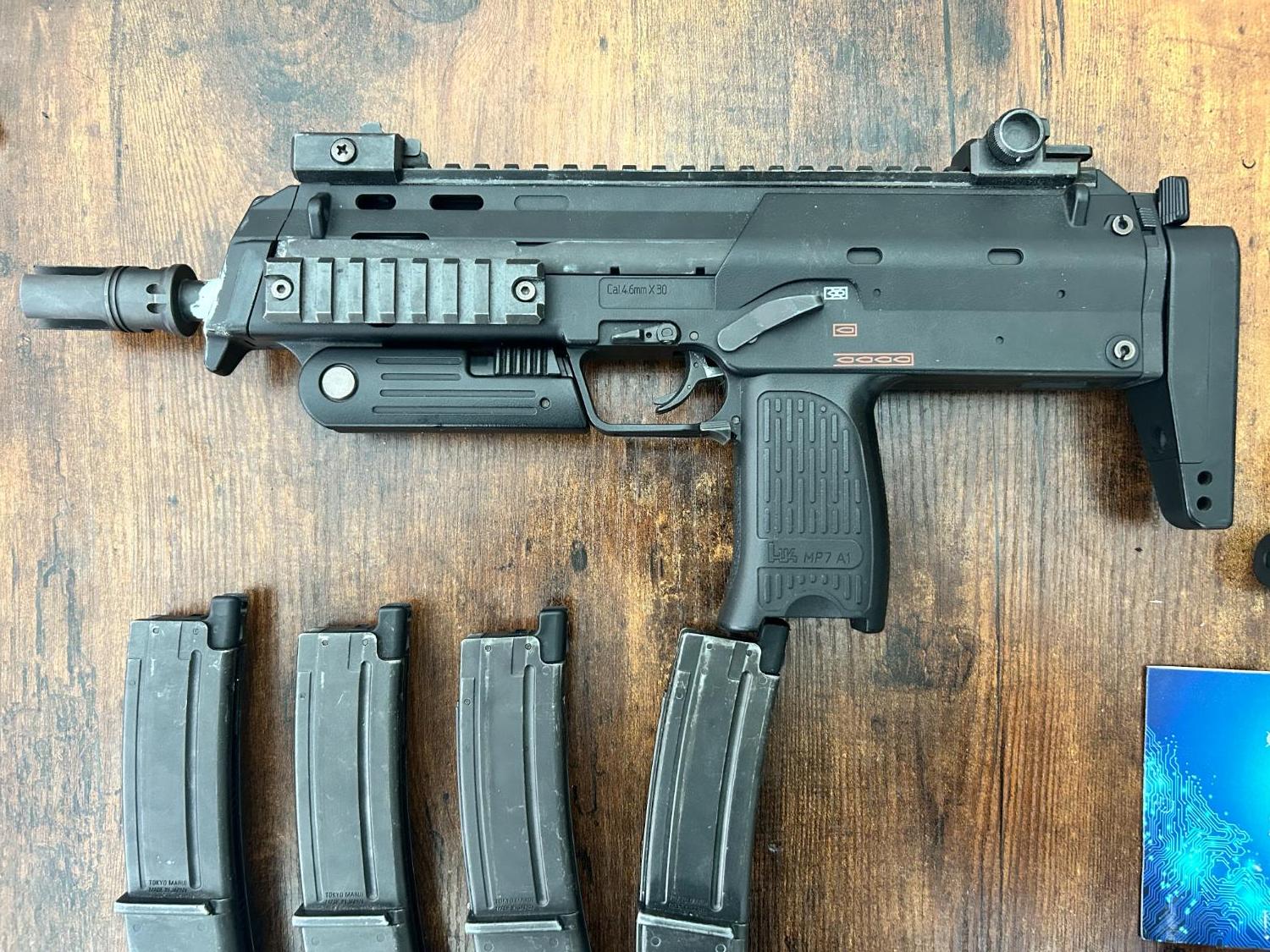 TM MP7 GBB, used condition, shooting well. You could see that there are some paint chips and dents, otherwise, as pics show, the front cap were broken, my ork friend sbeven (yes its a "b") use foundry adhesive “fix” it, so cause of that, the SF style flash hider could not be removed or replaced anymore.