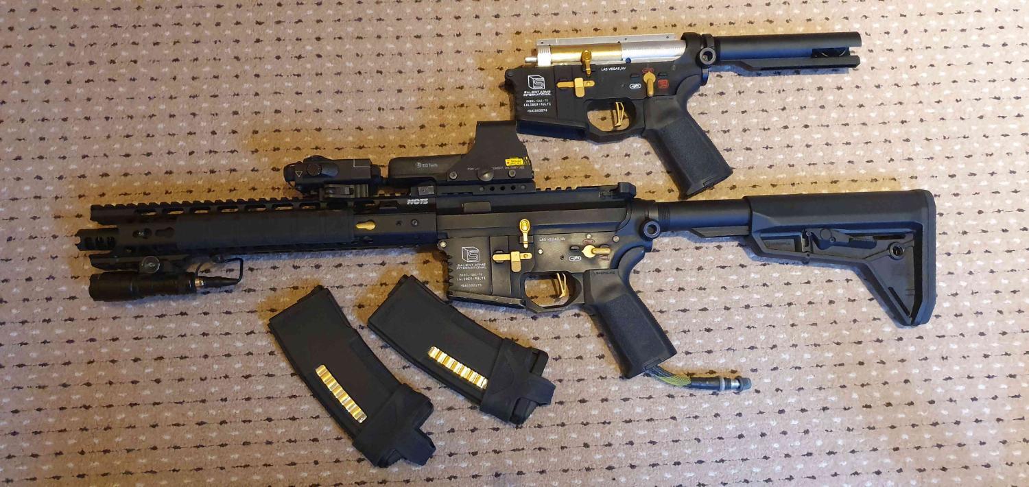 This receiver was bought so that I could build a 2 in 1 rifle using the same RIS/RAS rail handguard, outer/inner barrel, hop and hop chamber with either an HPA or AEG setup as some sites don’t like HPA (BOOOO!)