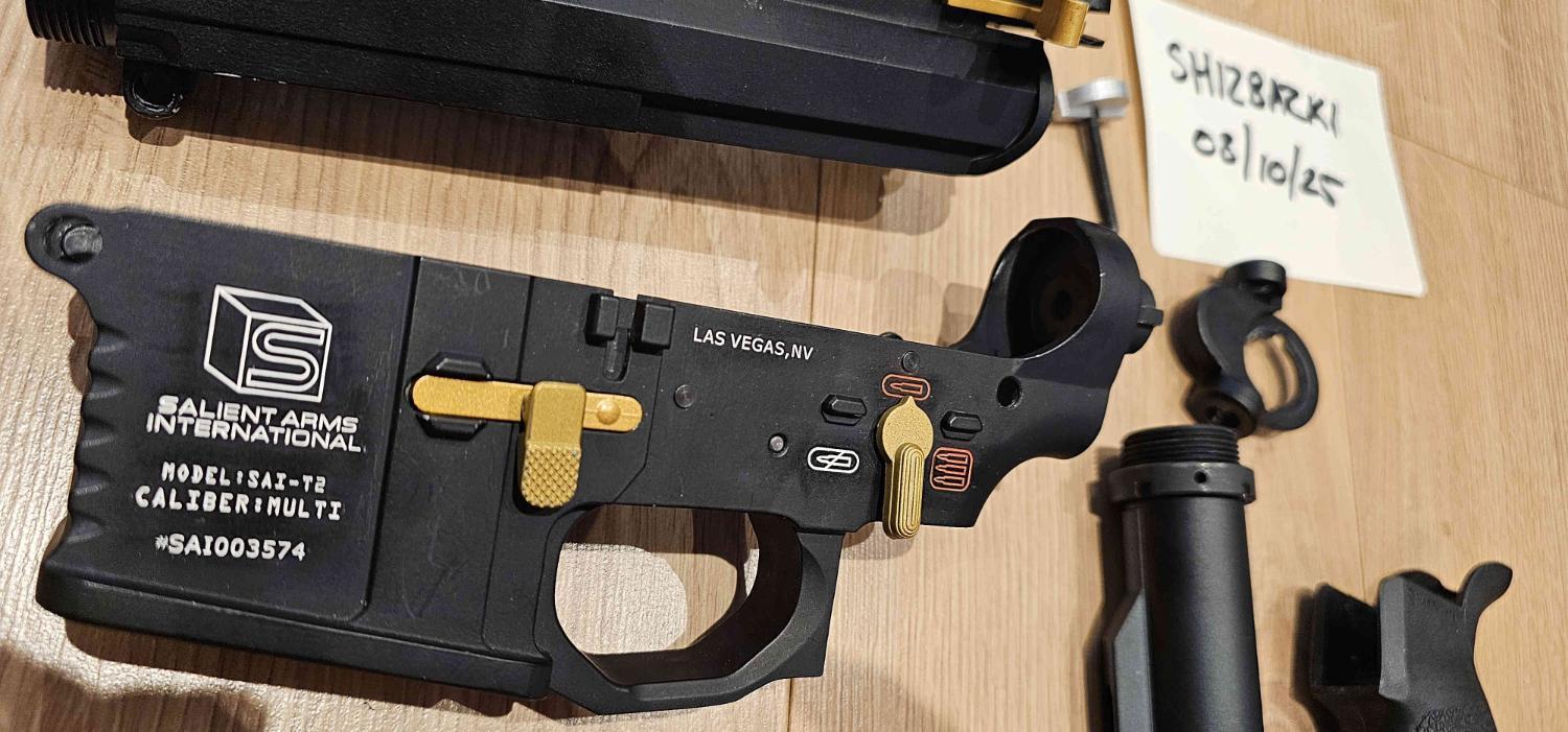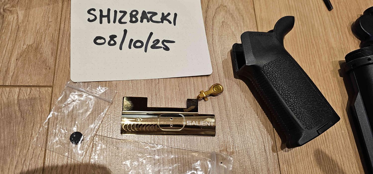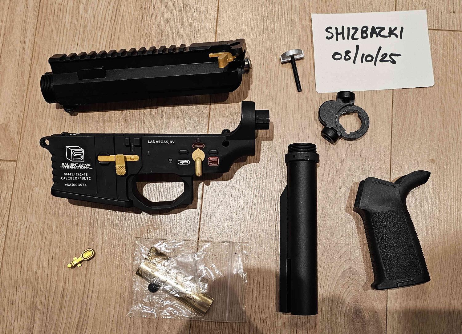 I am throwing some extra bits to get you going including a buffer tube (+screw and retention plate), a double QD sling plate, PTS Syndicate Magpul pistol grip (plus motor plate and screws). Im also adding the charging handle, magazine release catch, fire selector and bolt release catch all in gold to follow the SAI colour theme of black and gold.