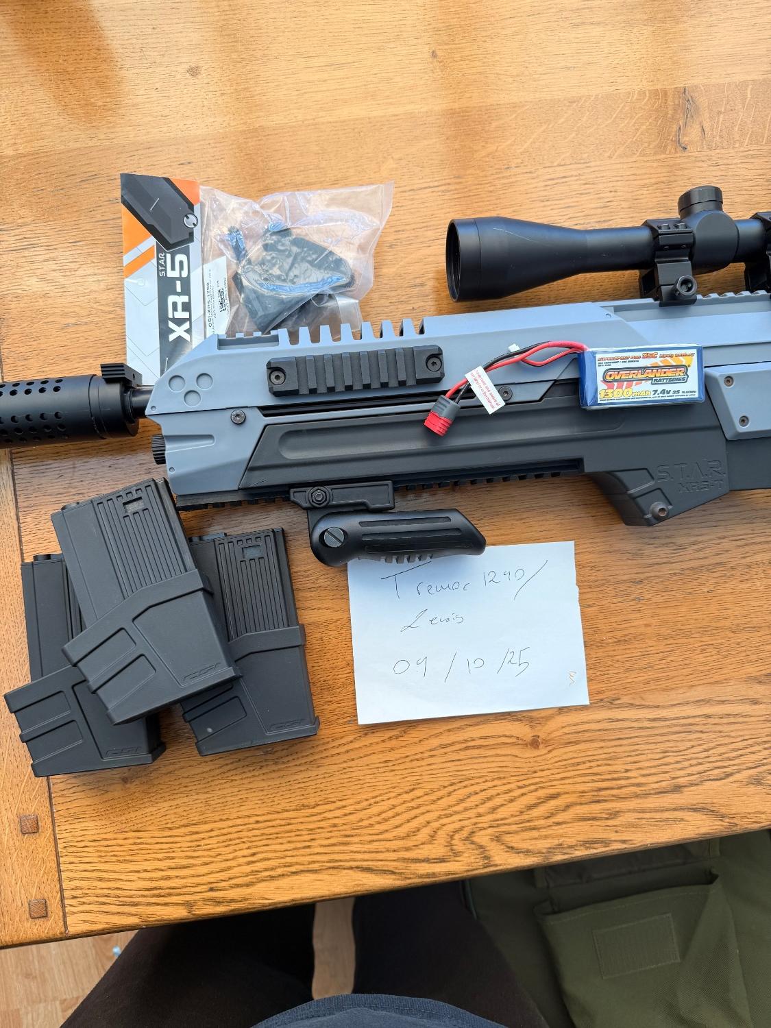 Also comes with scope, three magazines, a battery and spare front muzzle kit brand new in the bag. Will also include the original iron sight pair.