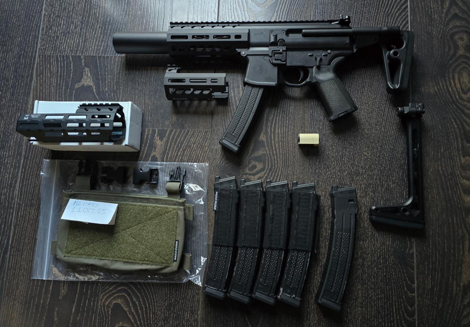 - APFG MPX with cerakoted black upper & lower, with full SIG MPX trademarks (specifically gen 1 trademarks, with the "MPX" on the upper)