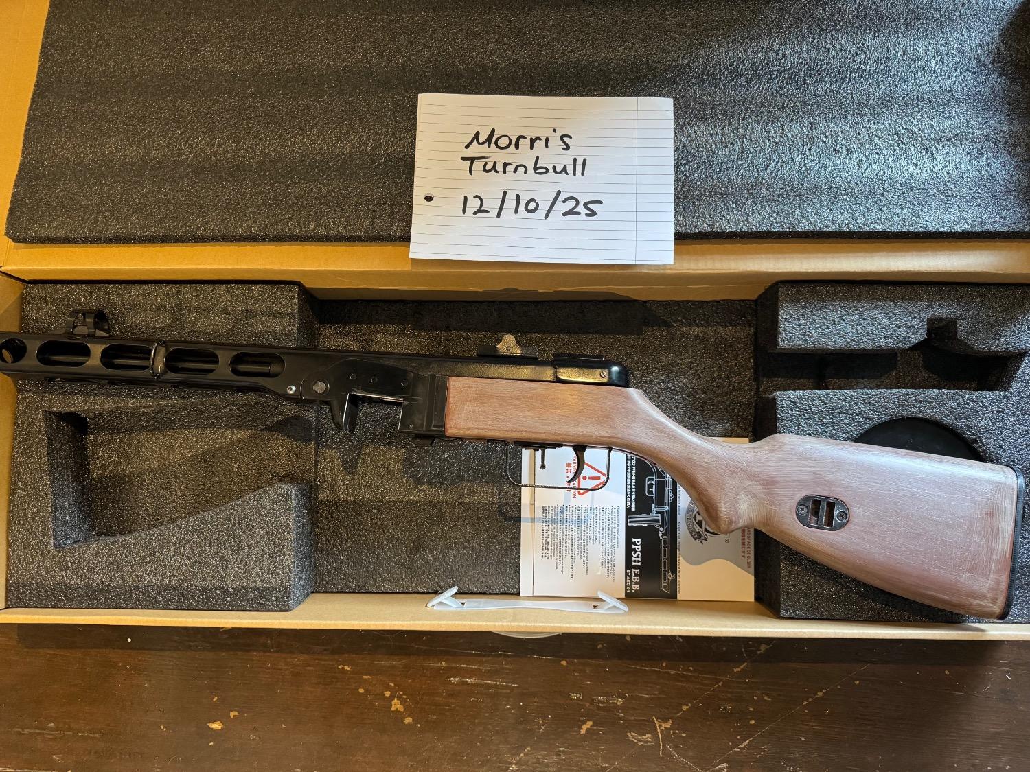 My ppsh-41 (ABS stock version) that I’ve had for almost a year but selling as I have another aeg and don’t use this enough. It’s got some wear around the magwell and other areas from general use. The drum holds 2000 BBs and is a hi cap wound on bottom.