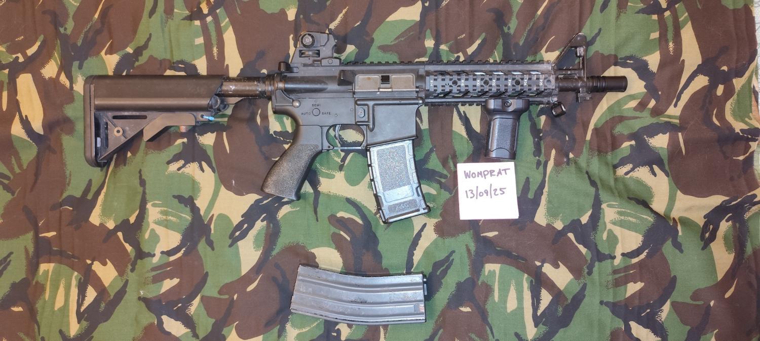 The venerable CM M4! This used to be the loaner gun for mates who were getting into Airsoft so they could get a feel for what it was all about, so it's been well used but still sturdy, no cracks or heavy damage.