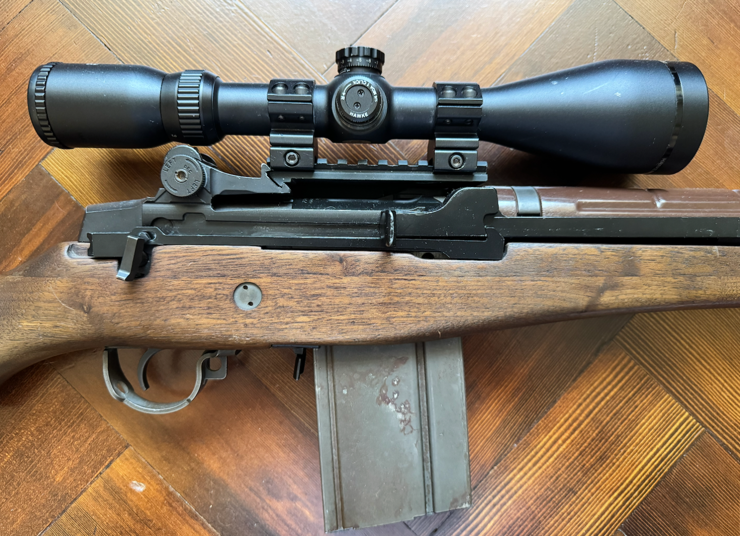 It comes with the scope mount and a Hawke Vantage 3-9×50 scope. I noticed that when zoomed in, the lens doesn’t focus properly. I am including it as a free accessory for decoration purposes.
