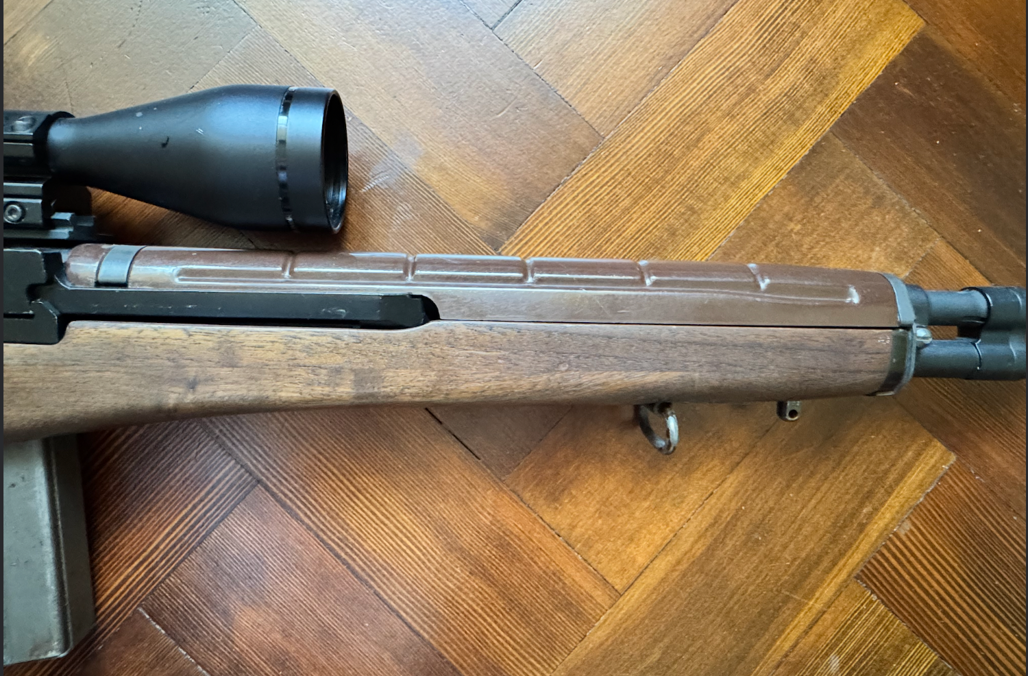 The woodwork is beautiful, and the upper handguard is made of polymer, just like the real M14.