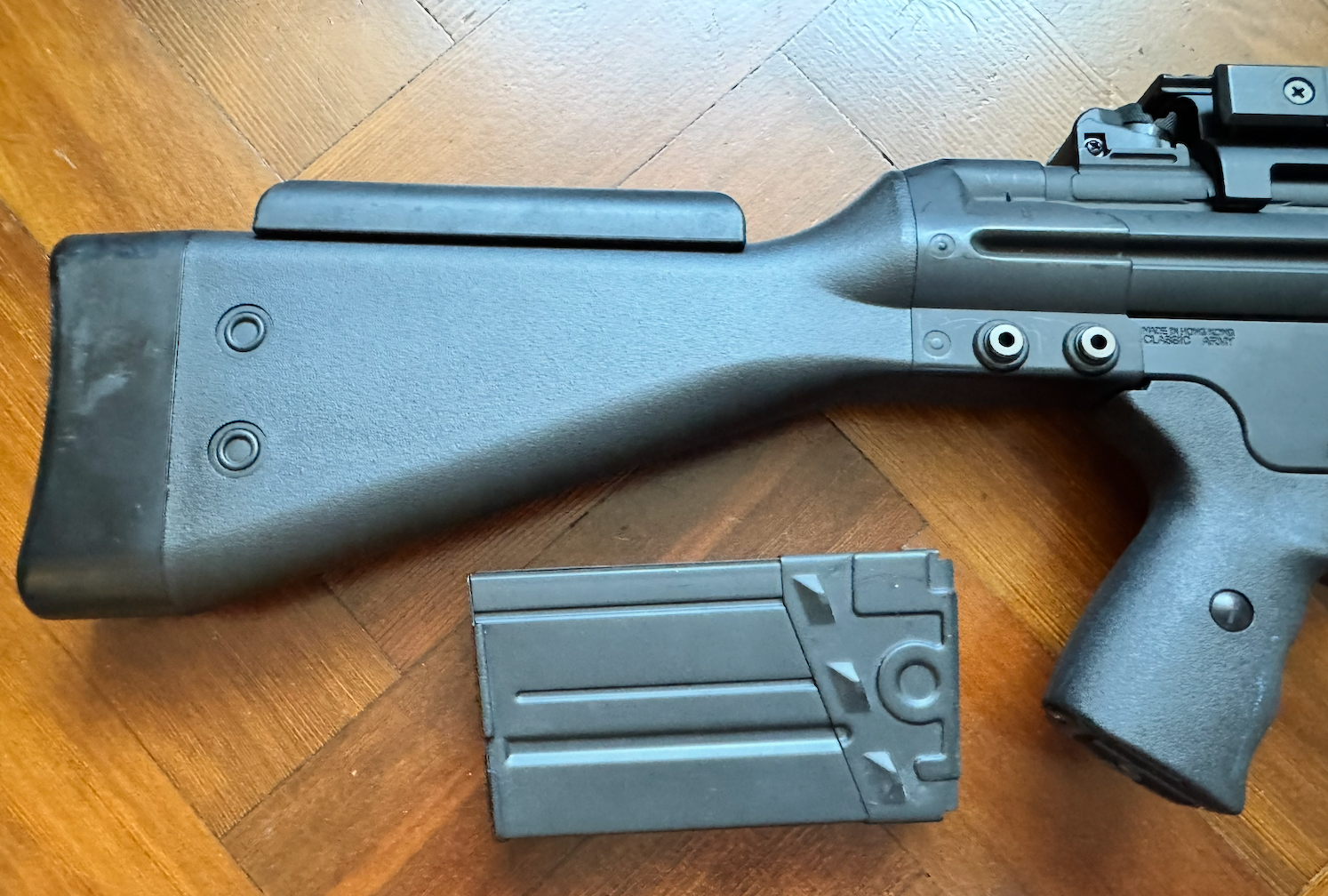 More info about this model can be found here: https://www.bespokeairsoft.co.uk/classic-army-sar-taktik-aeg-rifle-g3-ca010m