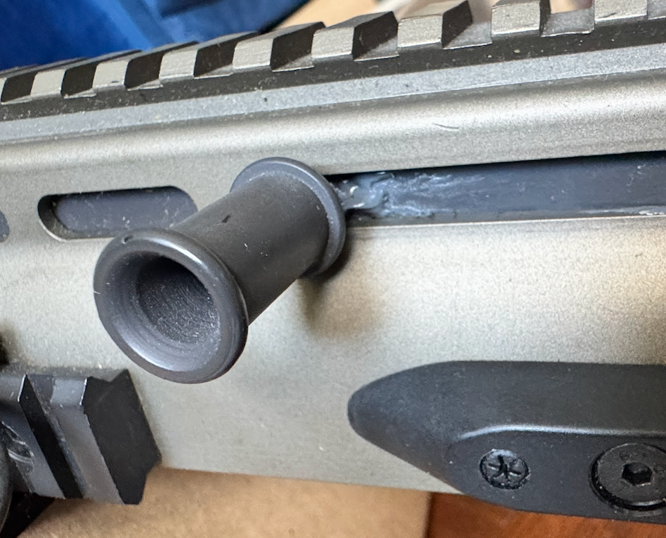 - The inner rod of the charging handle was broken. I glued it together with JB Weld (see pics). It can slide up and down now. Since it’s a mock charging handle which doesn’t cock like a real one, this does not affect the function of this AEG.