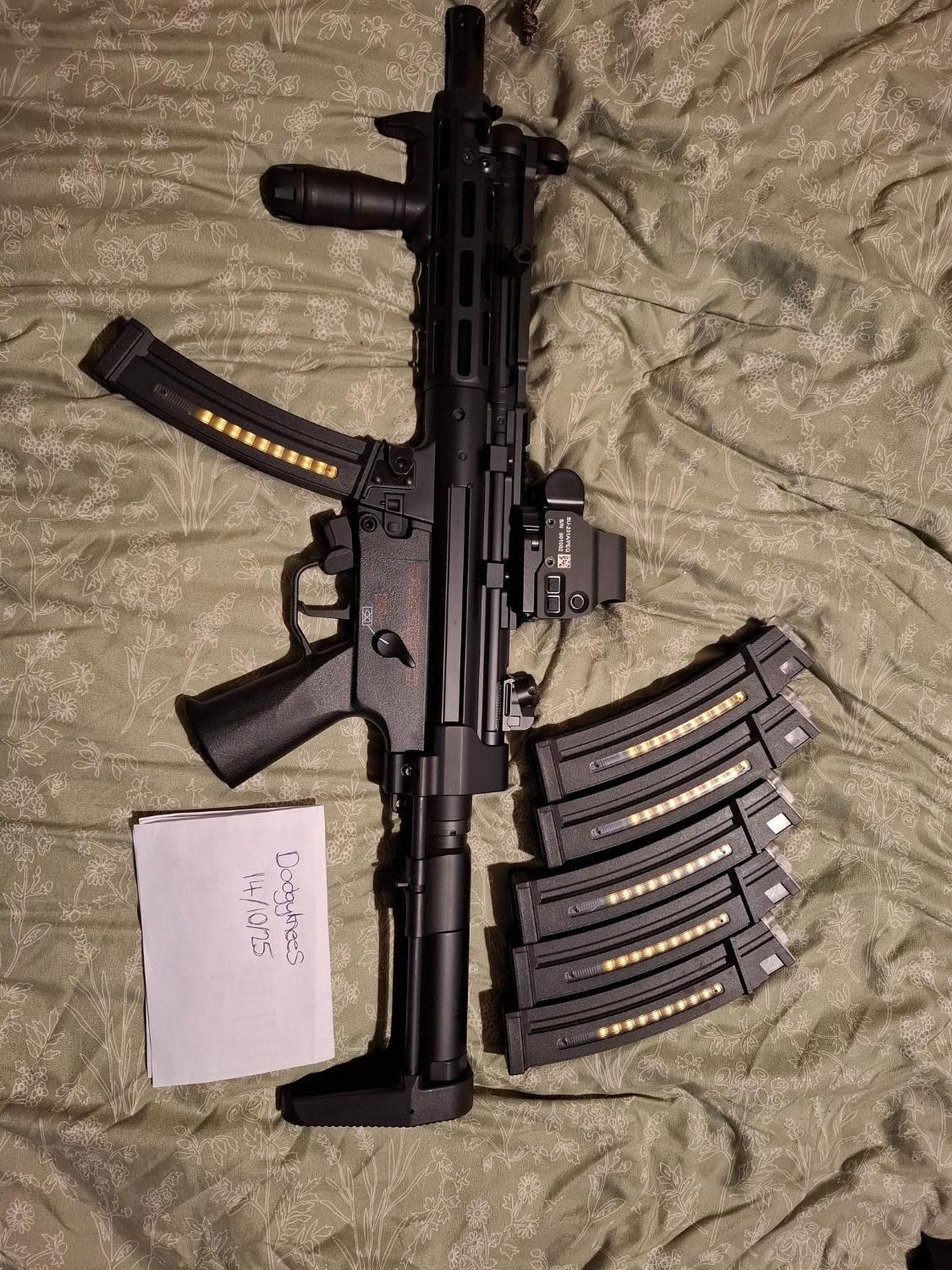 Excellent condition, less than 1k rounds. Quitting airsoft. Gun has been upgraded with 4uantum hop rubber and nub. 1.12j on 0.28. Range is amazing. Comes boxed with battery stock extension and 6 mid caps. Holy Warrior Eotech can be included for £70 extra.