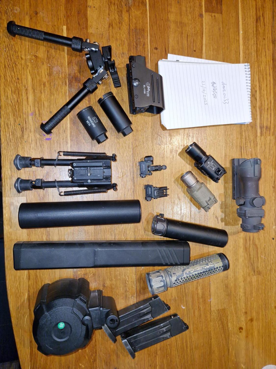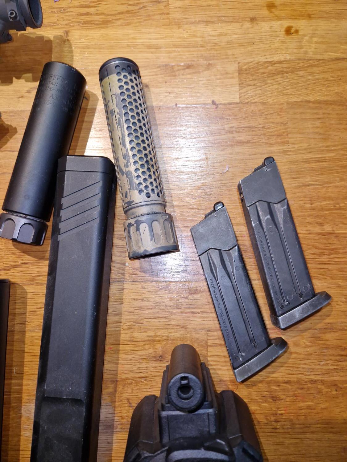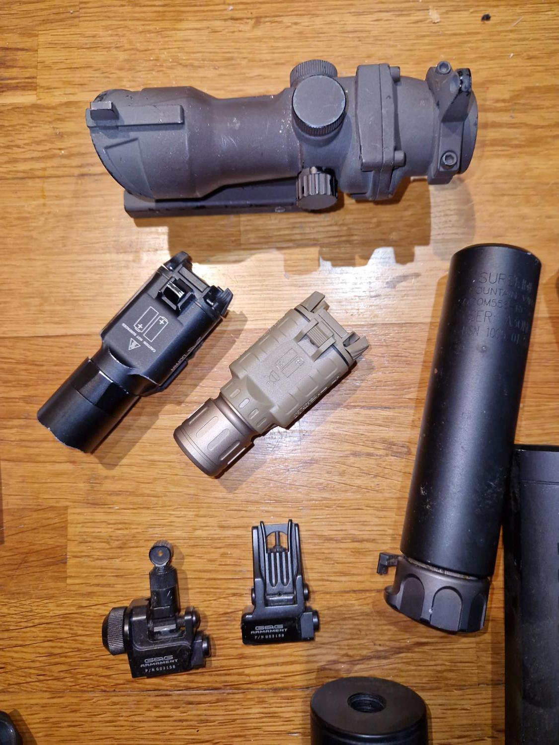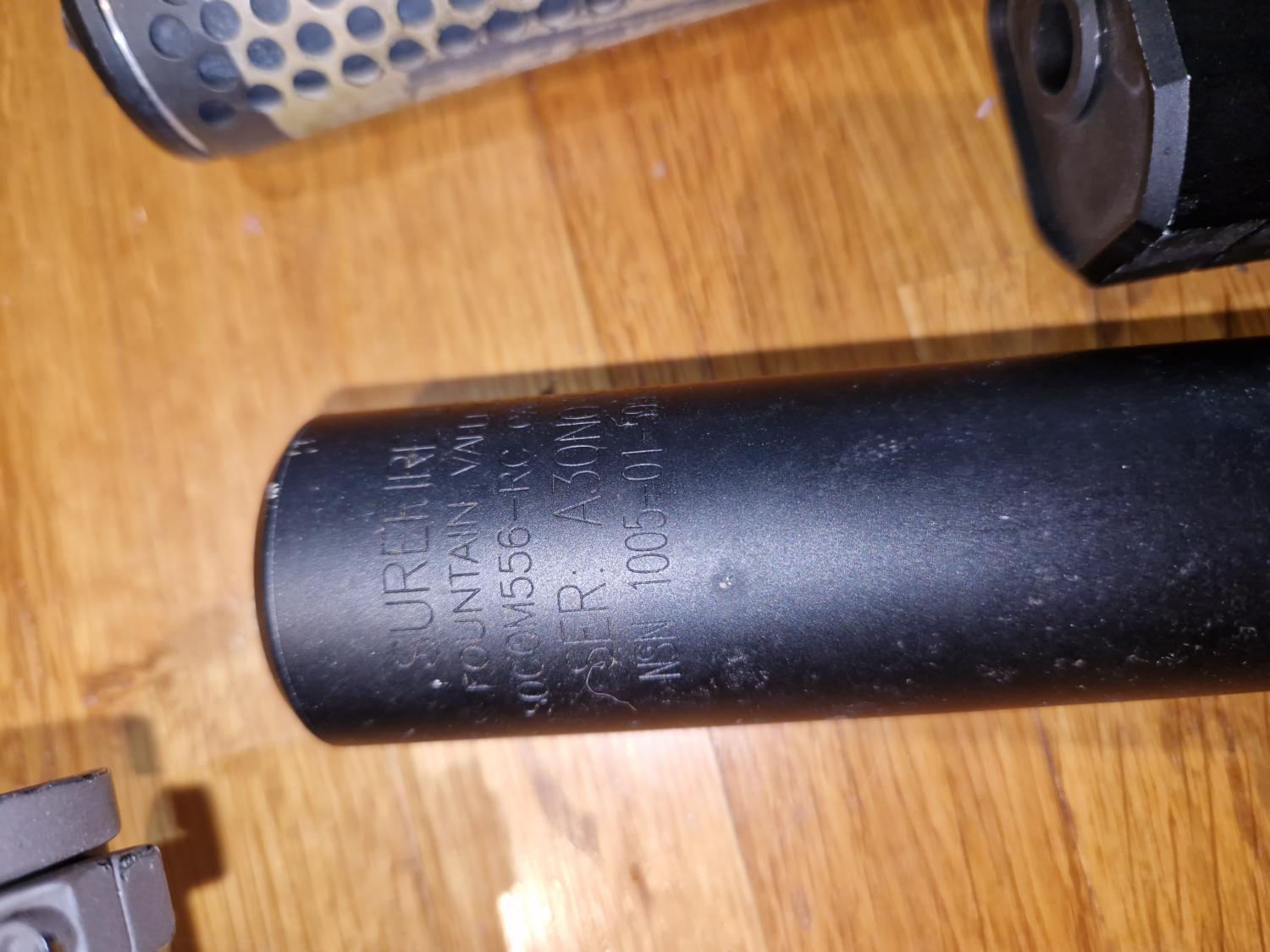 Surefire socom 556 clone silencer (black) £10 a bit rusty in places and no flash hider. The base of the silencer doesn't rotate.