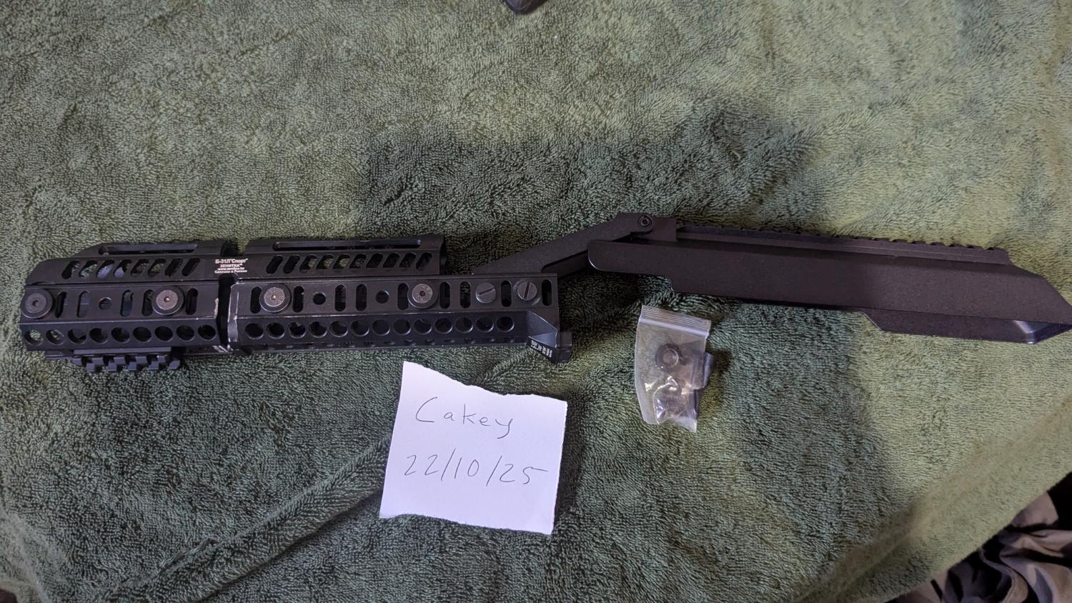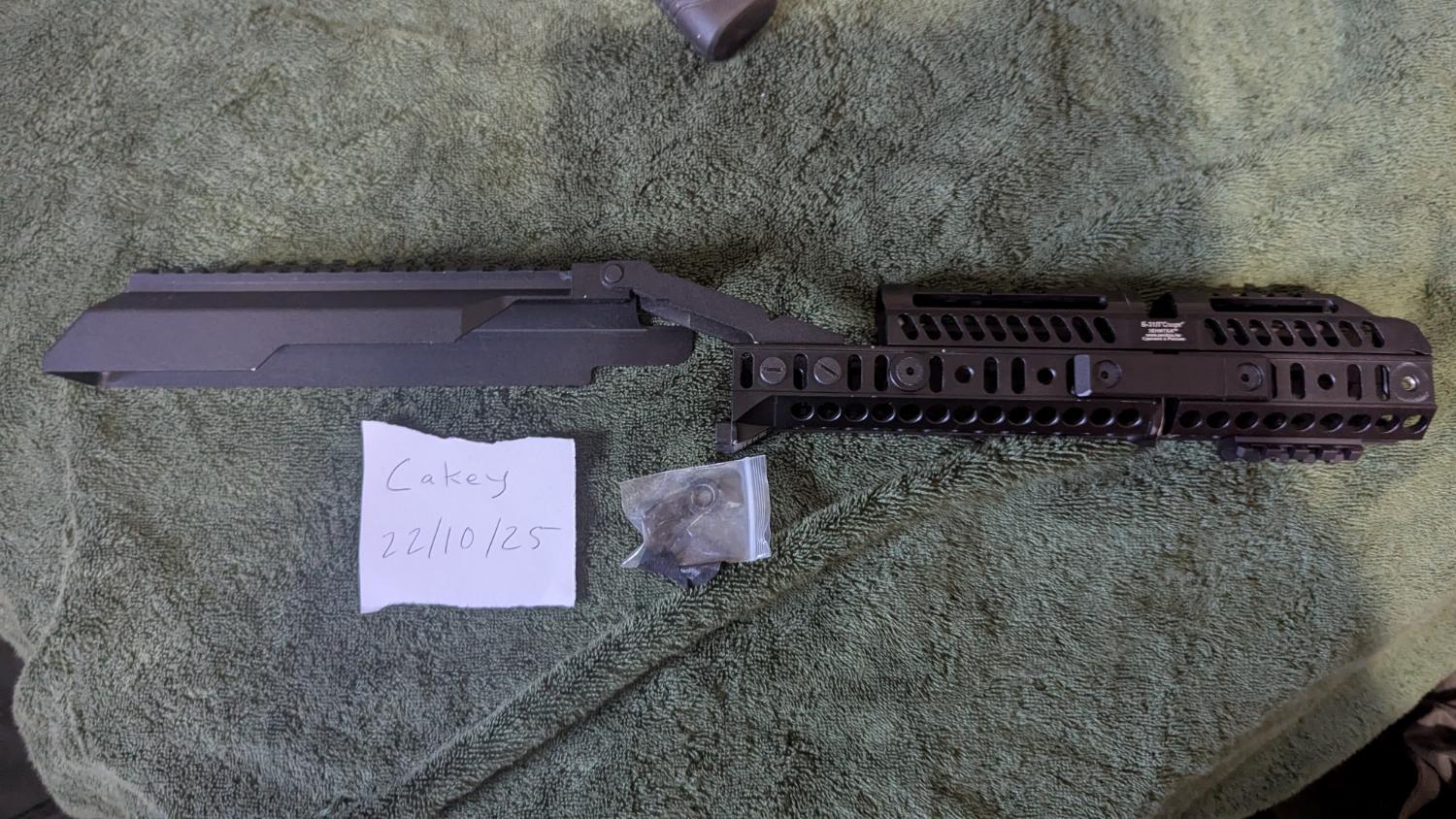 LCT AK handguard and dust cover kit which includes 4 parts that can be used separately to each other depending on what you want. Railed dust cover which connects to lower handguard as well as upper handguard which connects to a lower handguard extension. Also includes rail attachment piece for use with flashlights, lasers or grips. Handguard will fit most AKs, Dust cover is AEG spec. Handguard has seen use but dust cover is brand new and never been used. £150 alltogether which includes shipping.