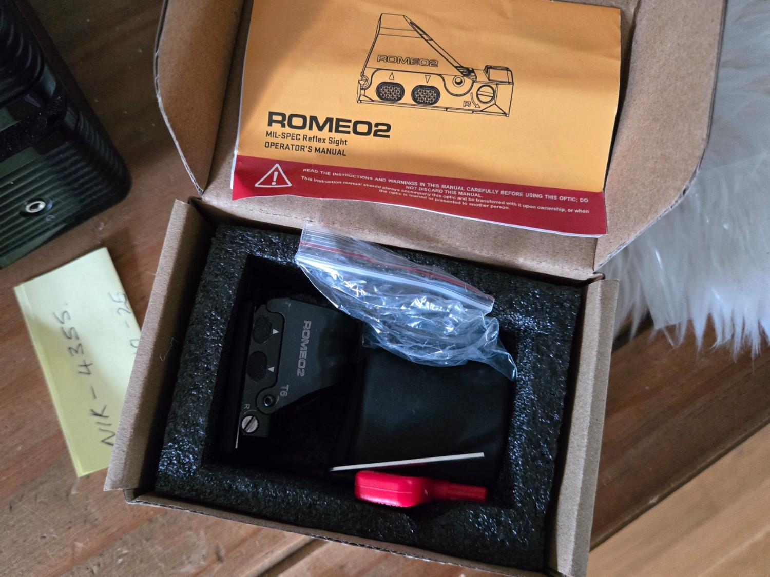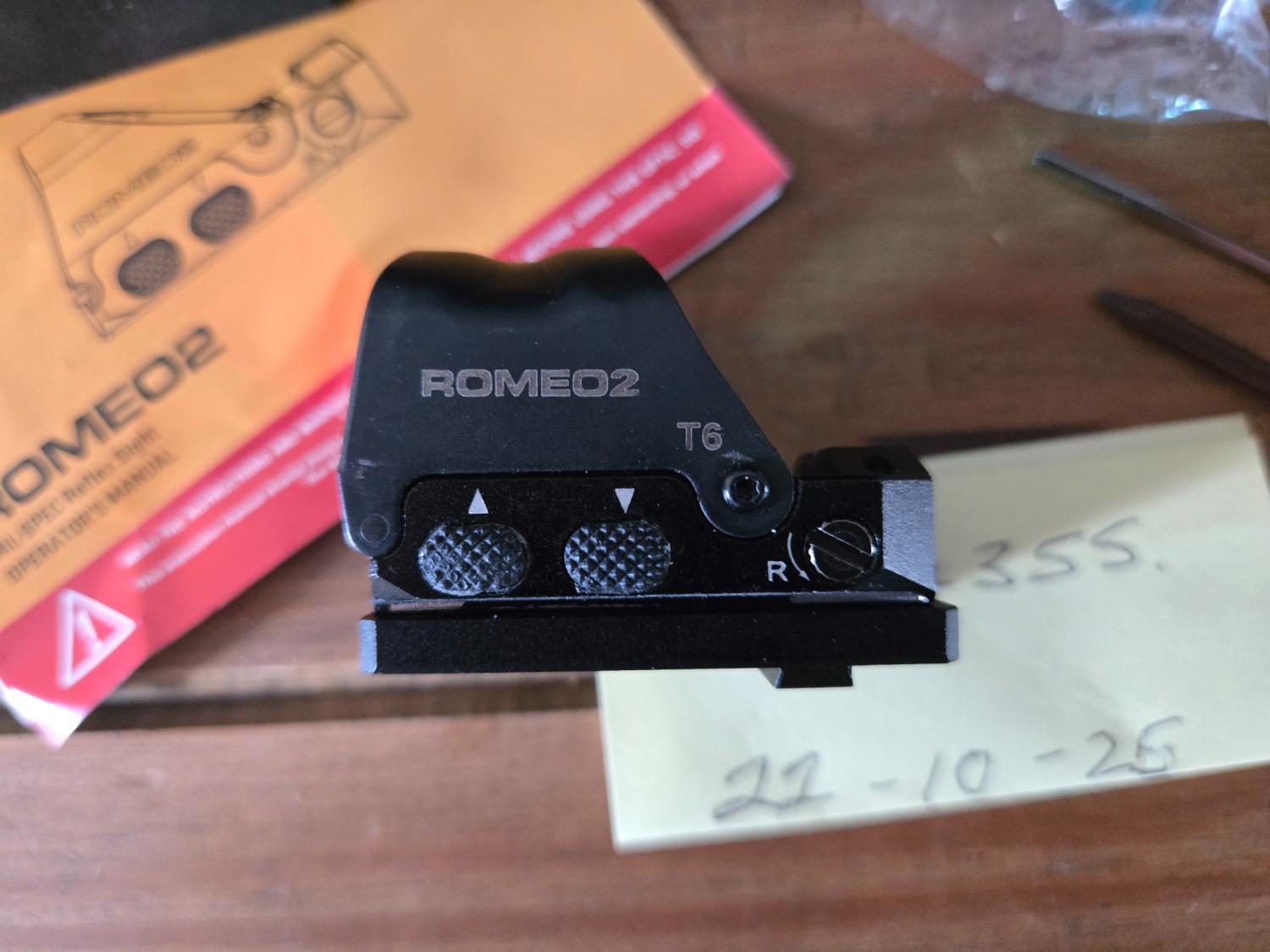 Romeo 2 sight,sig, circle and dot red reticule,changeable cover push button.black,in box.used but on a display item.undamaged or marked.