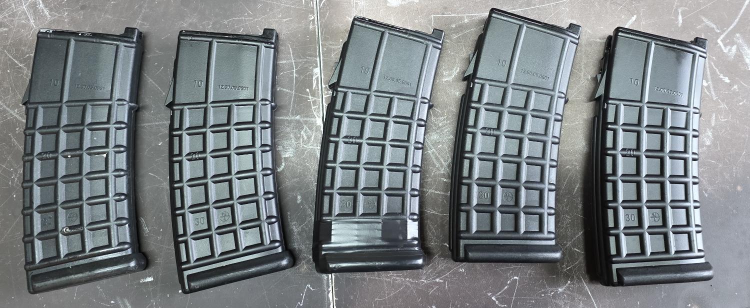 GHK AUG A2 olive drab & black receiver kit with 5 Gas Magazines + FG Airsoft Picatinny Rail + 2 barrels and AIRTACUK GHK AUG to M4 HPA Adapter + More