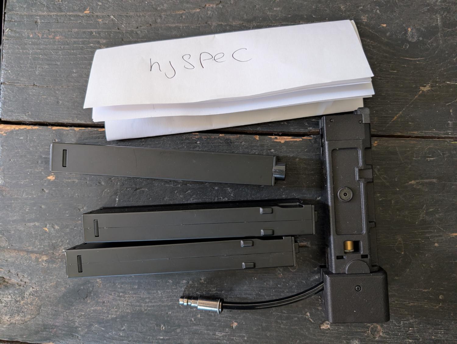 Brand new airtac vmp1 adapter with 3 metal cyma straight mp5 mid caps. Had bought it for my vmp1 but I no longer use it.