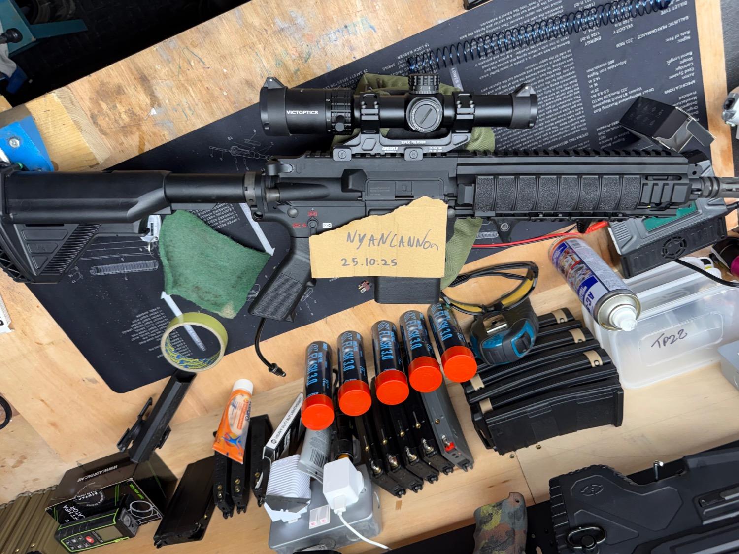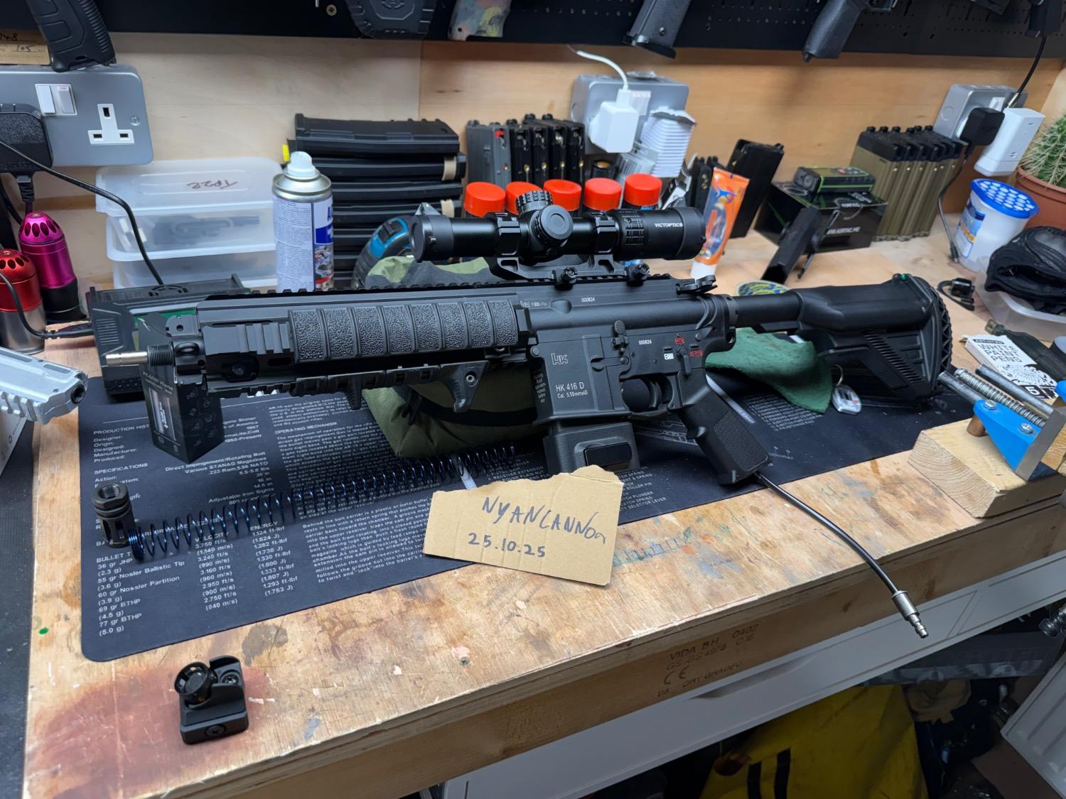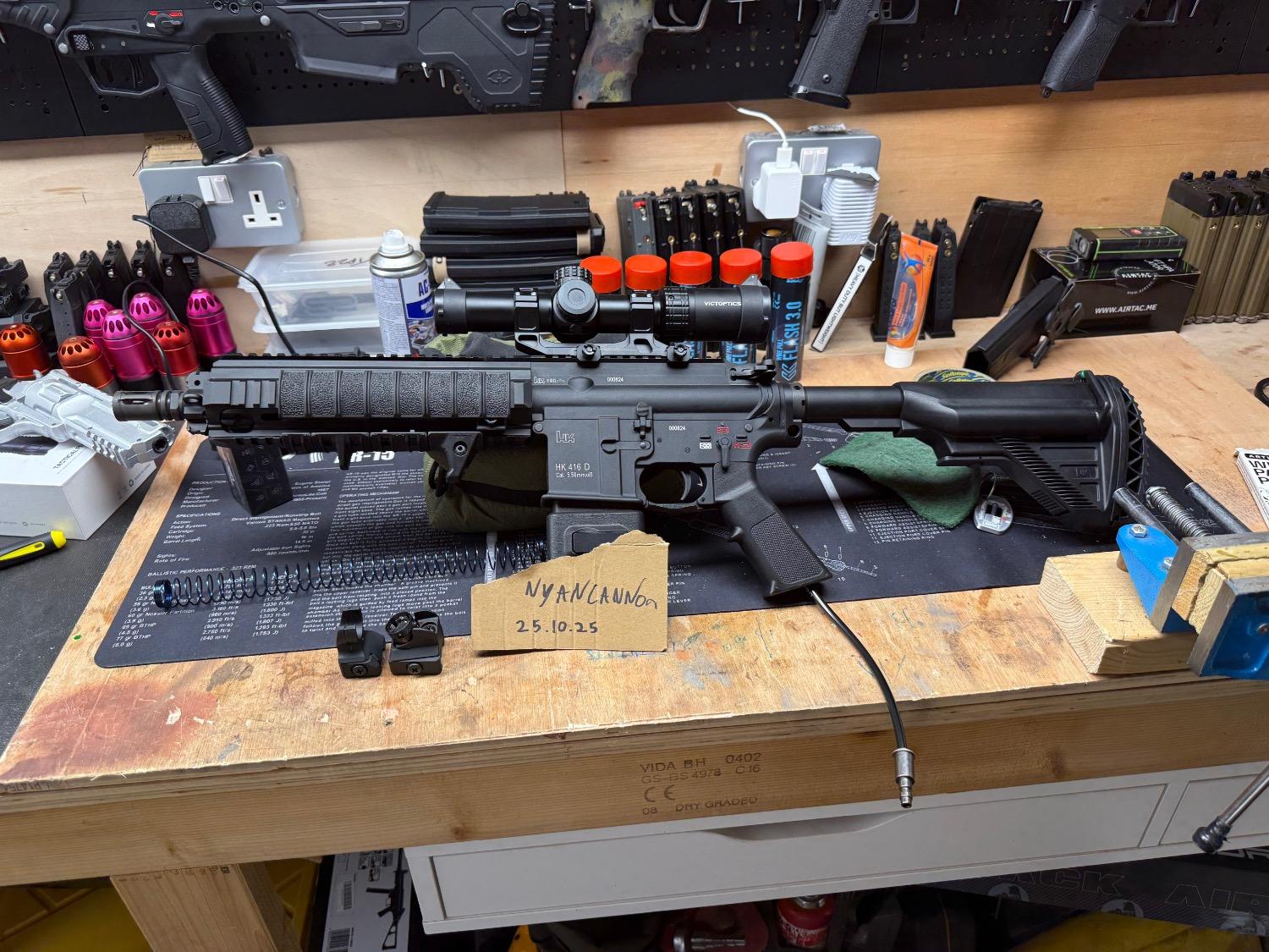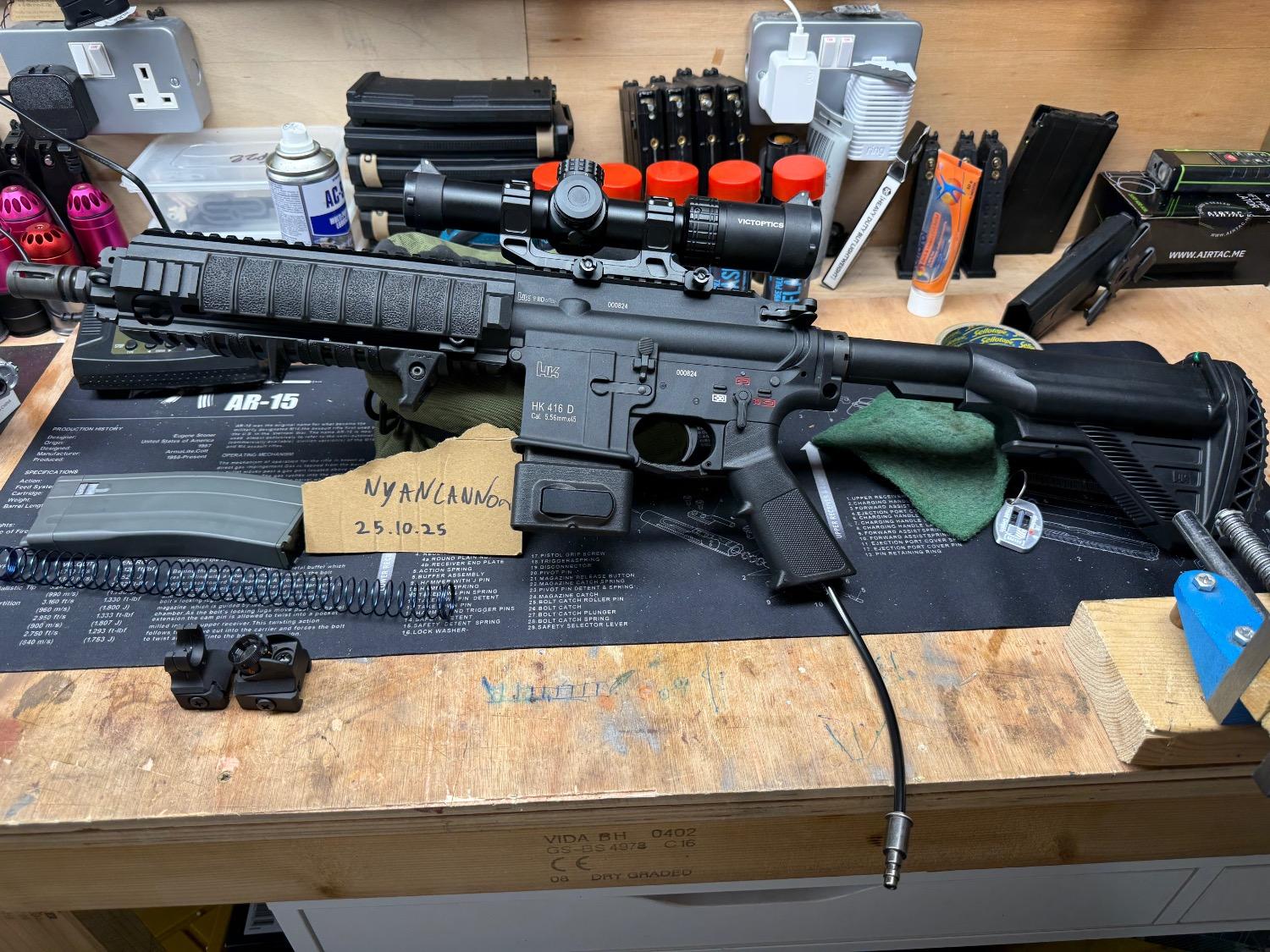 VFC 416D GBBR, currently has a HPA adapter on it but would take about 10 mins to go back to gas again. One mag.