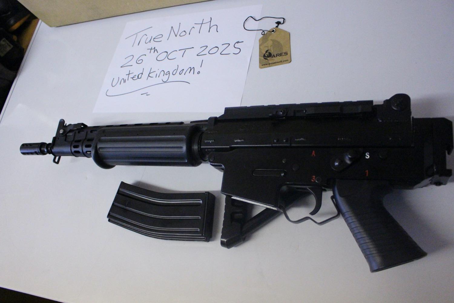 One Ares FNC Shorty with working mechanical three round burst etc, bought in 2009 from Fire Support in the UK.  Used a few times in games, though only ran two bottles of BB's through it. This has not been used in game since 2011 as I have many other guns and this is by far the heaviest of them all.  I have ran a few hundred BBs through it on the test range recently and the rage is not as good as new guns, the fps is low 270 or so with .25g BBs perhaps due to sitting in the box for years with the spring compressed