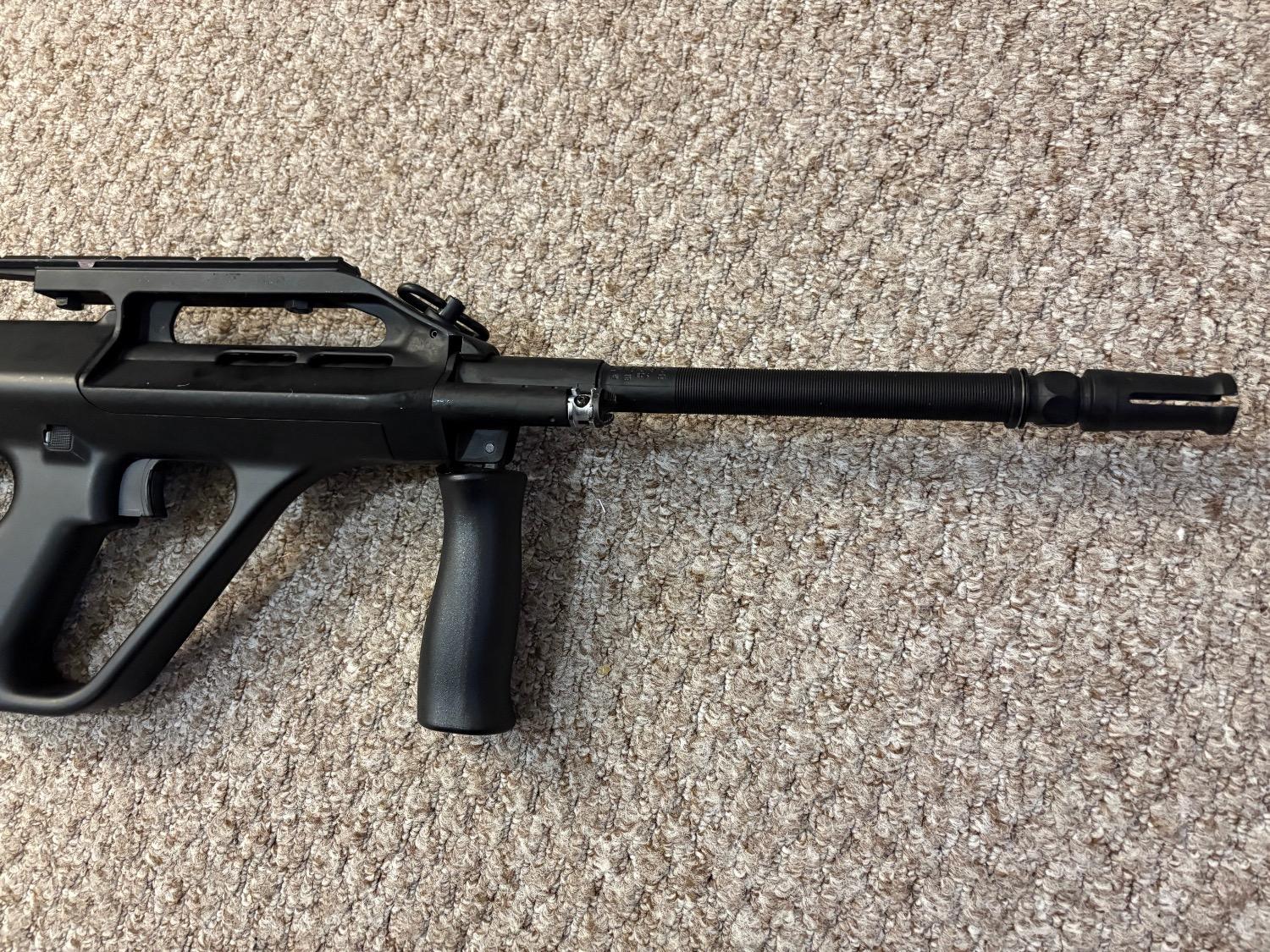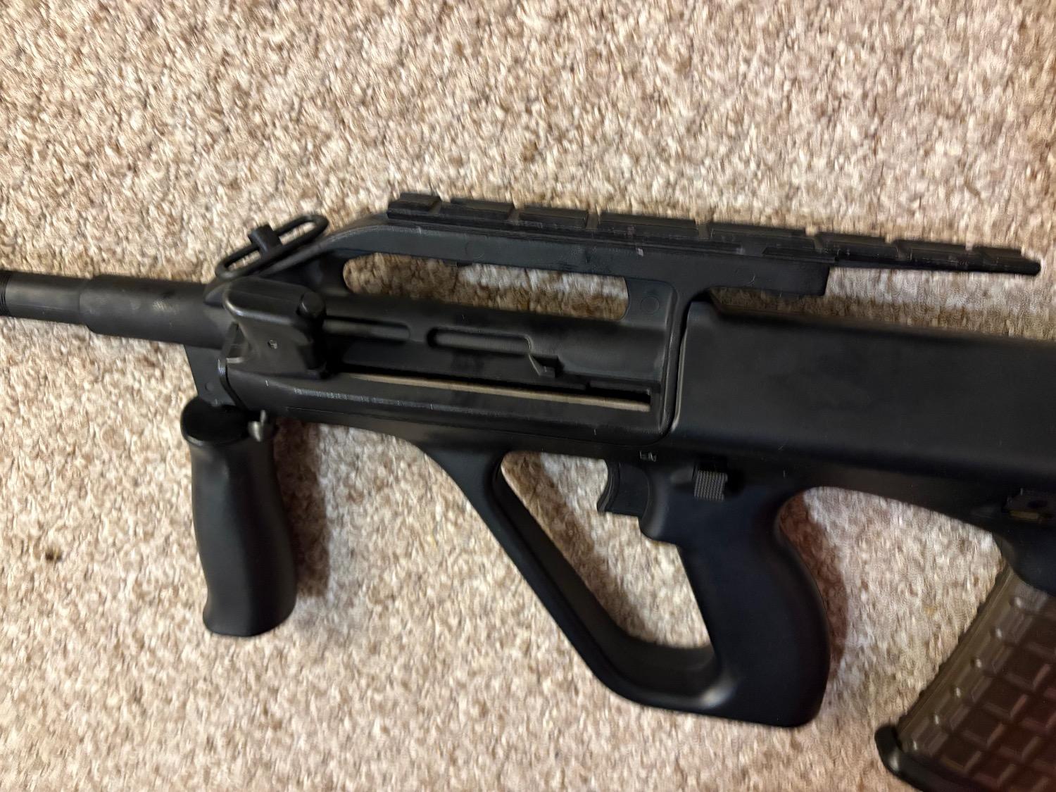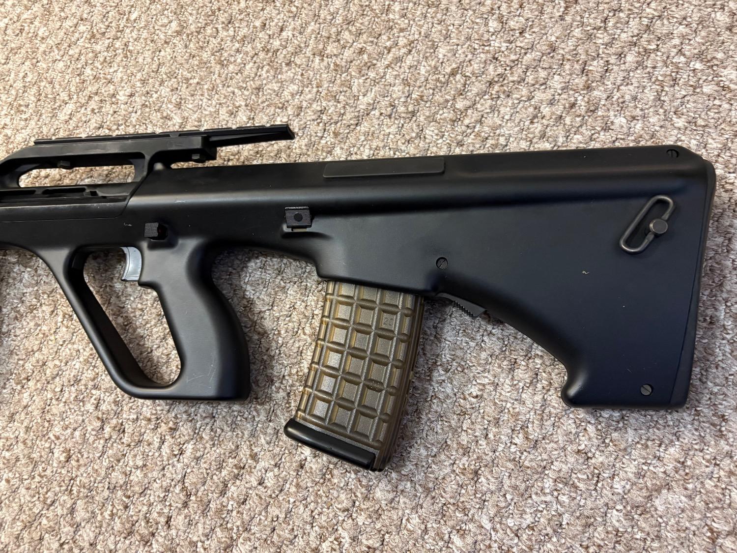 TM Steyr AUG is an airsoft replica of an AEGassault rifle (electric battery-powered).