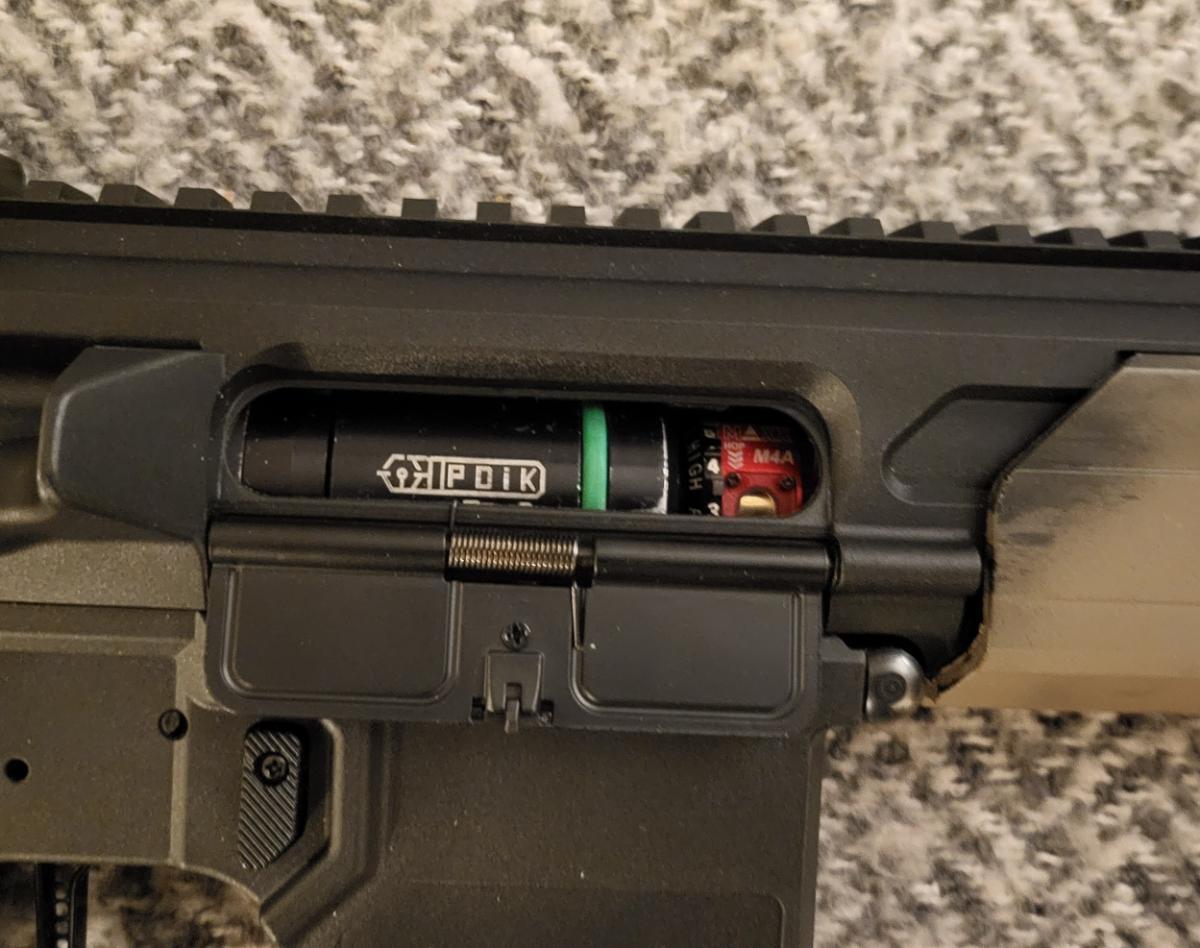 Inside the gun I have a max hop unit with a mancraft PDIK engine. This engine is super economical with air and requires no battery as it's purely mechanical. Please note that mancraft engines are amazing however they are semi only!