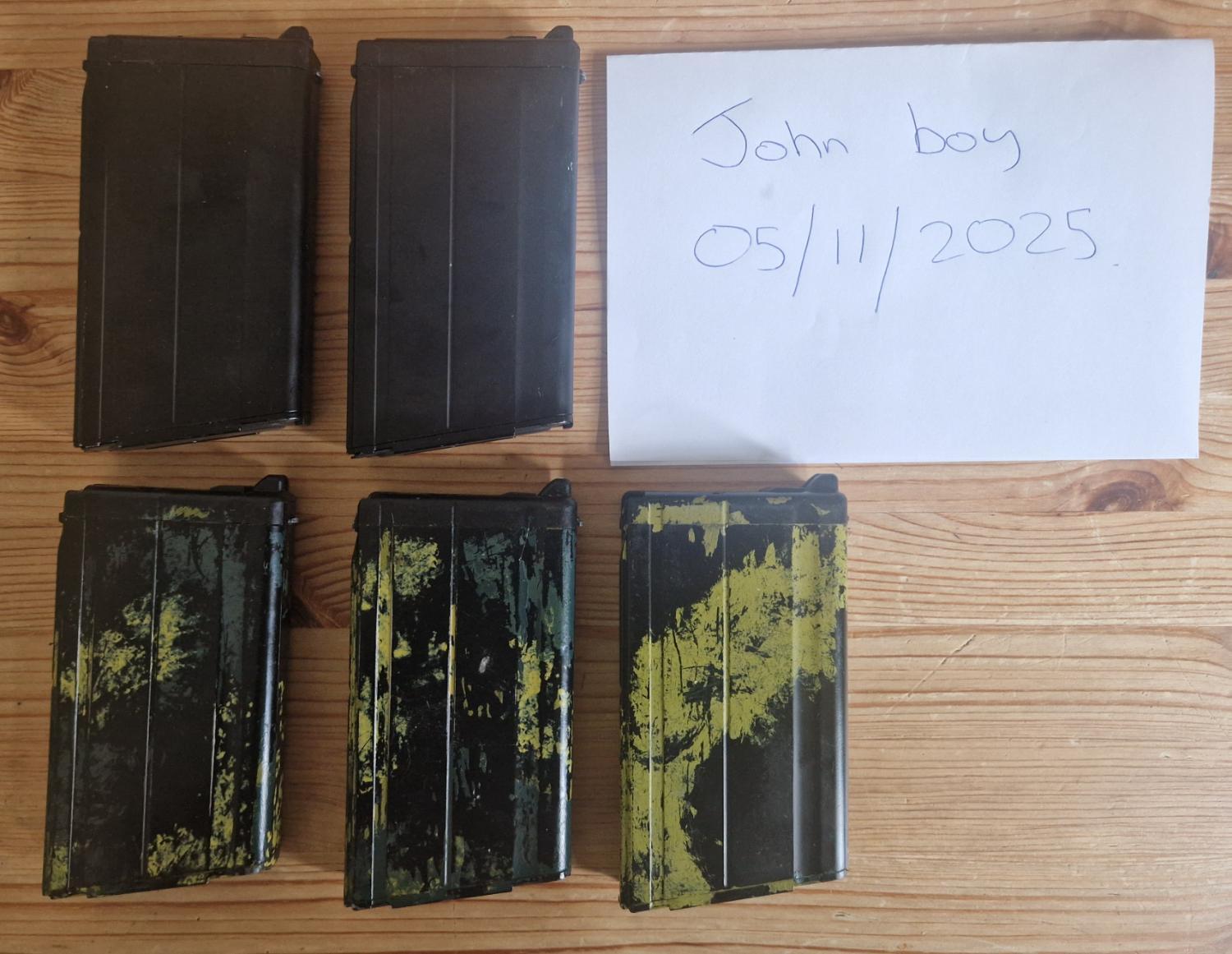 5x VFC FAL Magazines for sale, all gas tight , 3 have the rhodesian paint job and 2 are standard black