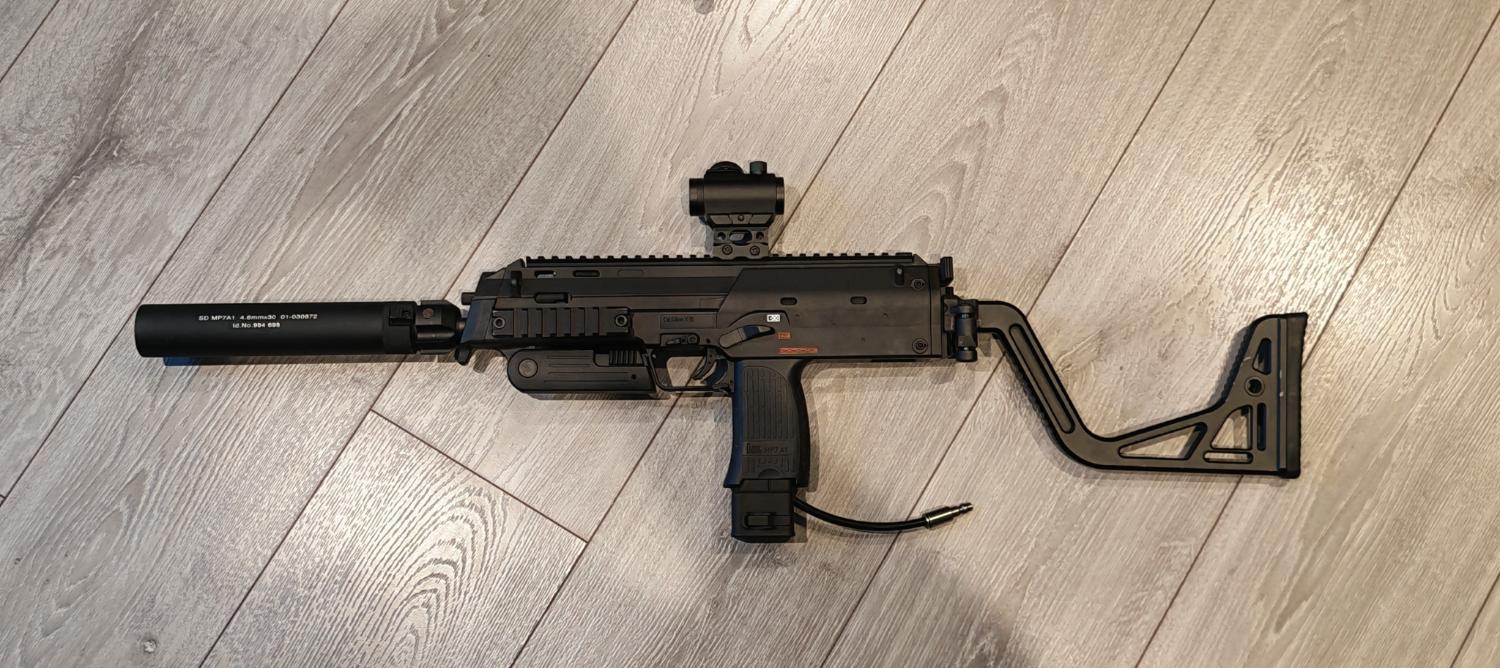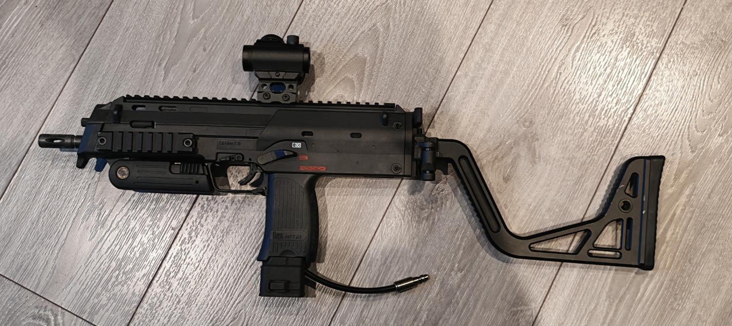 VFC MP7 Gen.2 GBBR with a few extras. Shoots really well with amazing recoil and sound. Plug into your HPA tank and off you go!