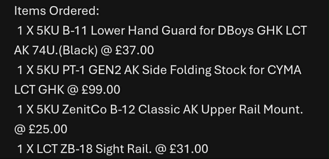 - accessories fitted: a mock suppressor/flash hider, a vertical foregrip / short rail handguard, and a small laser optic (guerilla optic)/ laser housing mounted on the side rail. Metal Folding stock.