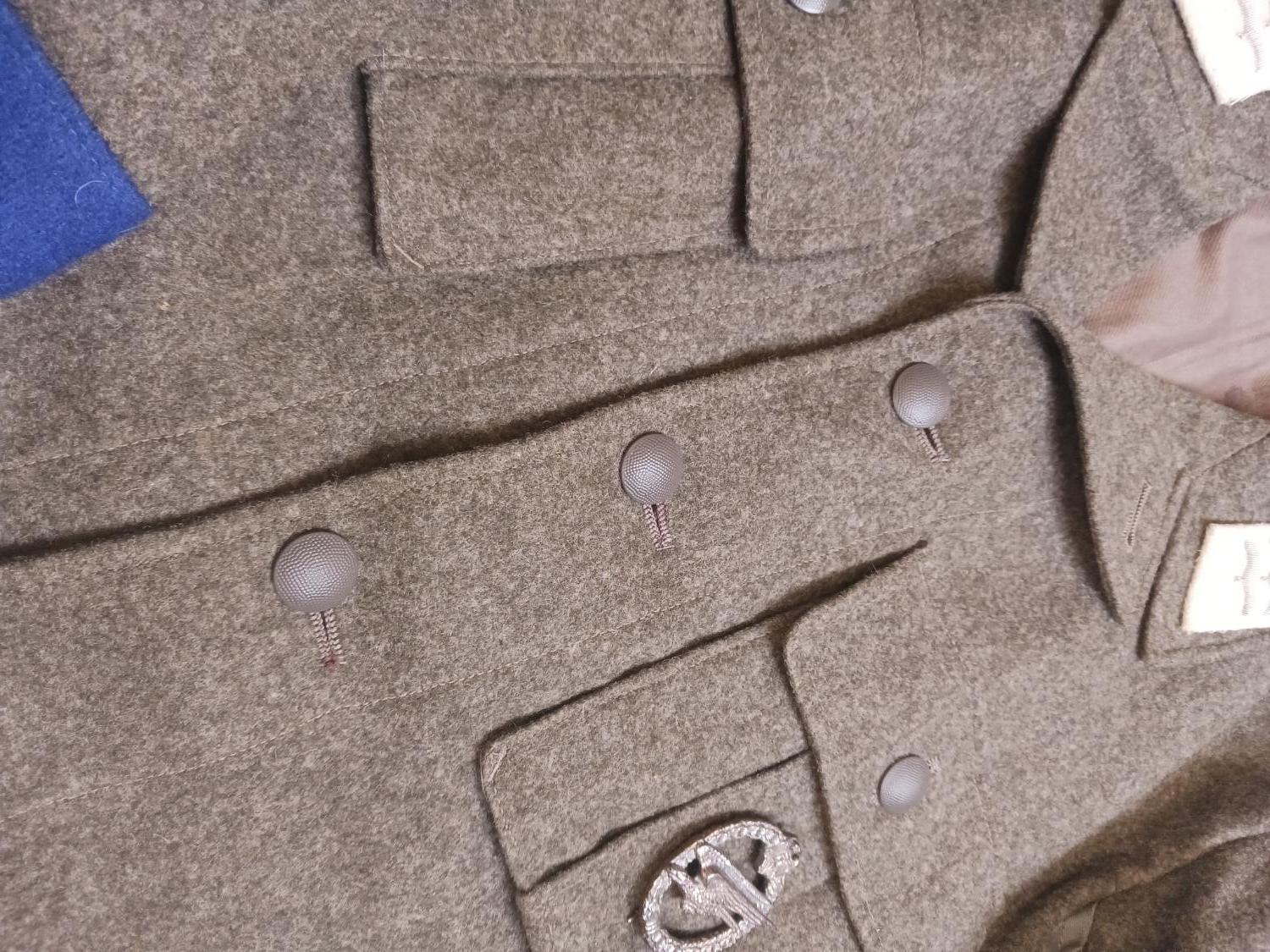 A Replica wool M40 made using the same methods as movies did, with WW2 Swedish jackets, converted with correct buttons and extra pockets removed, the price includes all the badges so its worth it for that alone. Jacket was bought unissued has not been worn just converted.