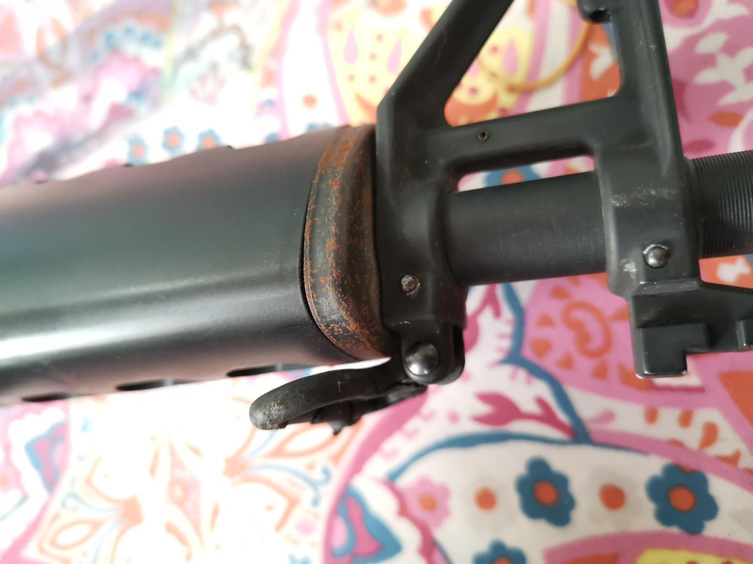 The gun is in fantastic condition, with only a small crack in the plastic of the stock from its previous owner. This has never got worse or affected the gun in any way. And there is some superficial rust to a tiny amount of the metal on the gun which happened during deep storage. Again, this does not affect the gun at all.