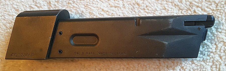Some marks to box, magazine and on the frame between the trigger and slide (shown)