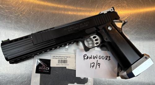 For sale, Nineball (Laylax) 6 Hole Custom Hi Capa. Incredibly rare Nineball kit, very little information online about it, but I believe it could be a Japan only item. Consists of a Nineball frame (not one of the standard 7” ones), matching compensator, custom polymer slide, trigger, safety, beavertail, and hammer (possibly sears, but I can’t be sure). Other parts are listed below. I have gone for aluminium parts for lightness and speed, so with the polymer slide it’s very snappy. Other parts fitted: UAC Sculpture Grip (with unused tape) 5KU DOM Magwell 5KU Slide Stop 5KU Bomar Rear Sight 5KU Outer Barrel (non recoil) 5KU Lightweight BBU Edge nozzle Fibre Optic front sight TM inner barrel & hop unit AIP 130% recoil spring Comes with 1 mag. £160posted or collection from Swindon160.00 GBP