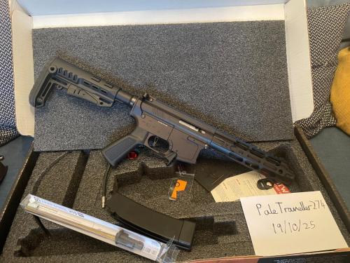 Purchased this time last year. Reluctant sale due to health. 2023 model but new old stock as searched extensively to find the buffer tube version. Upgraded with a Silent industries hop and PDI tightbore barrel. Runs incredibly, never seen another and always have players ask about it. Few very small marks on muzzle block and rail from general cqb use. Have 4 like new pts emp9 mags for extra but in the middle of a move, will update when found. No battery. Due to value will prioritise local buyers. Will also consider partial trades but cutting collection to a minimum so may be very picky. +£30 postage and fees.600.00 GBP