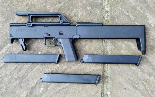 Maruyama FMG9, one of the coolest and most unique airsoft replicas out there! Inside this futuristic transforming blaster, you'll find a VFC-made Glock, making it a beast in both style and performance. This is the best version compared with the other Fmg9 makers on the market. It is new, in the box, only tested. In the price are included 3 long gas magazines, much needed for your fun time. All new and gas tight. Price is posted.298.00 GBP
