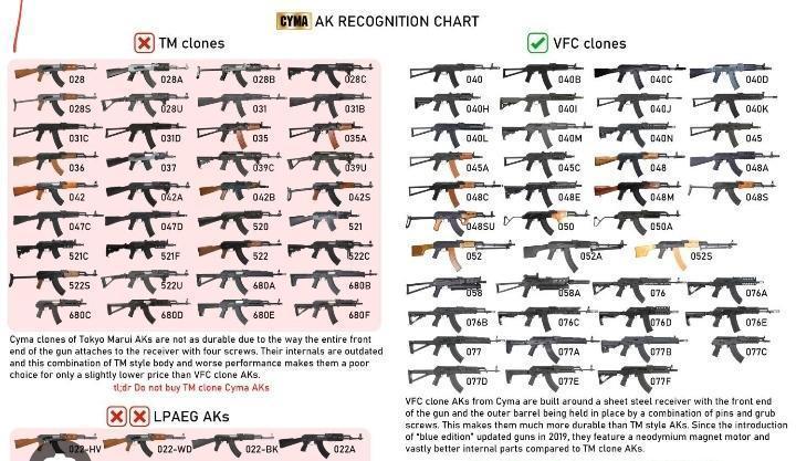 2. The other thing to look out for is there are different cyma systems. There's the vfc based and tm based. The vfc are generally regarded as being better quality and in my experience they are as my vfc based aks-74u is better quality and fit than my tm based ak47-s. Just something to think about when trying to fit external parts.