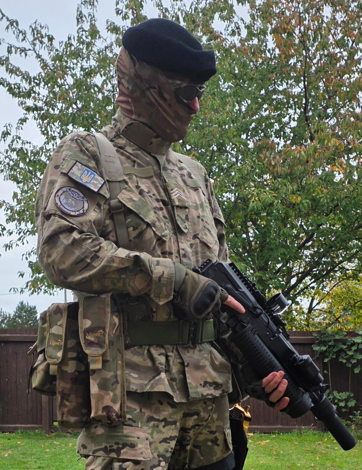 Ukrainian DIU loadout. Genuine Ukrainian MTP, patches and cap badge. The left arm patch patch was a gift. 😁 The Bizon was clearly liberated from an ageing Spetsnaz operator.