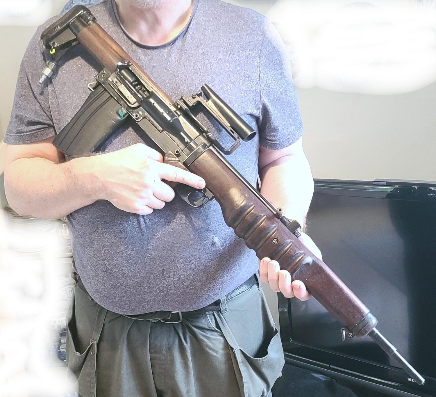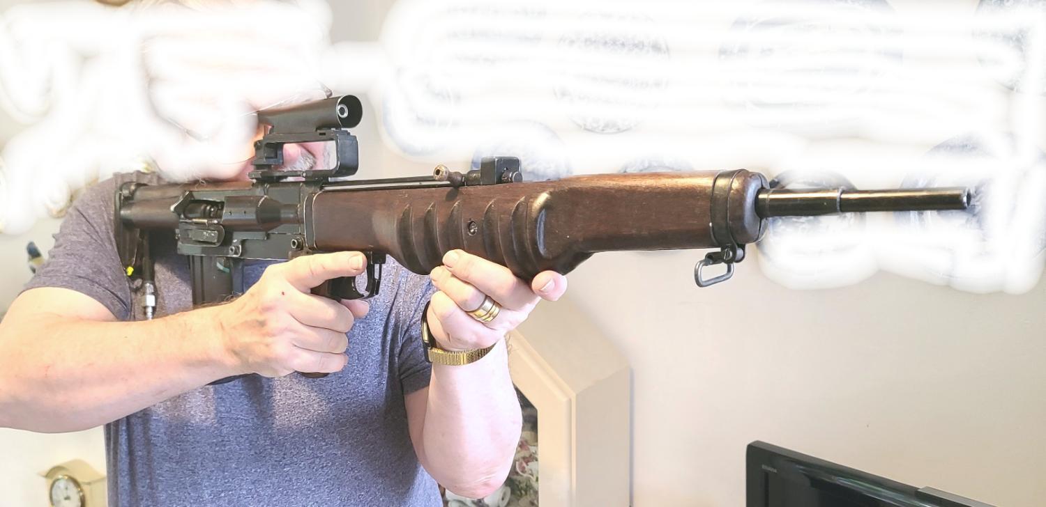 TL:DR - This is the working prototype of my Airsoft EM-2 rifle. I designed and made this, mostly by CNC machining solid Aluminium and Walnut. I've only made one. I'm posting it here for the great Airsoft Hive mind to tell me what they think one might be worth if I were to make any for sale. Longer but still briefly 🙂 The story of the Janson 'Automatic Rifle, .280 in, E.M. 2' is a relatively minor but interesting bit of British Firearms history, and the Bullpup design and 0.280 inch / 7mm calibre choices were way ahead of their time. The rifle was actually adopted, briefly, in 1951 as the UK's new standard Service Weapon to replace the aging Lee Enfield's and Stens after WW2. But Politics, and especially American insistance on what would become the NATO standard 7.62mm round, saw it un-adopted only a few months later (by Winston Churchill no less!) and no 'Rifle 7mm, No.9, Mk1' was ever actually produced. I started trying to make myself a reasonable Airsoft version of Stefan Jansons EM-2 around 4 or 5 years ago, before the OTT videogame versions appeared btw 🙂. Teaching myself a bit about hobby scale CNC machining and 3D CAD/CAM as I went along . . . I'll let you imagine what my first attempts looked like! and how much wood and metal I wasted, and how many tool bits I've broken! I began making my Airsoft version based on a copy of one of the original blueprints for the 'Rifle 7mm, No.9, Mk1.', and later on corrected it a lot after I had the rare and utterly invaluble privilege of being able to compare my initial efforts with a real steel example, courtesy of Mr Jonathan Ferguson, Keeper of Firearms & Artillery at the Royal Armouries Museum in Leeds. Jonathan is also the Author of the definitive 'Thorneycroft to SA80. British Bullpup Firearms 1901-2020', which has two chapters on the E.M.2 and its history. Without Jonathan's book and his help answering questions on a most memorable day in Leeds my version wouldn't look anything like the real thing does. The major parts of the prototype are made from CNC'd solid Aluminium and solid Walnut planks with a steel outer barrel and real Walnut veneer. It is fitted with a Wolverine Inferno HPA engine as there just isn't room for a gearbox inside the EM-2's frame and the inner barrel is 600mm long stainless steel. This project has taken a lot longer and cost a lot more than I imagined it would when I started. Obviously the thought of selling them, if only to make some of my money back(!) has crossed my mind, and I've spoken to a couple of people about the idea. But the consensus seemed to be there wouldn't be enough demand to justify having a batch of them professionally manufactured, even if I have already done most of the R&D, and without professional production and their economy of scale savings, the unit price and the time needed for me to make each one makes it almost certainly uneconomic to do so. But just recently while corresponding with a user on the forum I thought hey, I may as well ask what other Airsofters think a realistic price for it would be? and if anyone would want to buy one if they could? So, over to you Hive mind 🙂