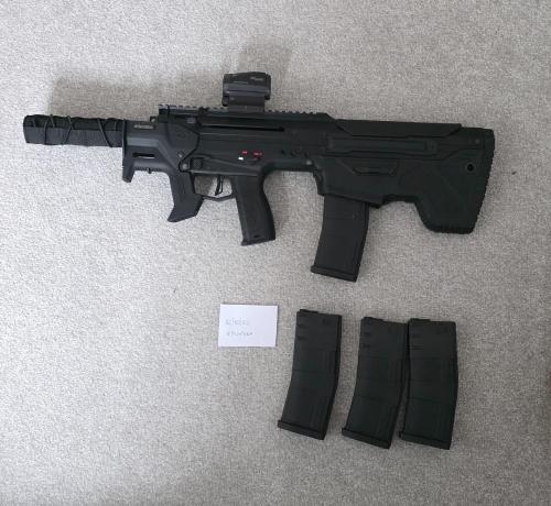 Hi, for sale my favourite skimrish gun, upgraded Scorpion Evo. Shoots amazing, far and precise, trigger response is hpa like, instant. Its amazing value for money gun, outperforming most on the market for fraction of prize. Its been well taken care off, all the scratches and and weathering was done purposly to add more battle worn look. Tape is just for asthetic purposes, nothing is broken. Its been only on 5 games so far, so its almost new condition. List of upgrades: - short stroke cnc trigger kit - upgraded hop up wheel - upgraded hup up rubber - upgraded spring guide - choice of 4 quick release springs to adjust fps on the go - airtec stock stabiliser This gun comes with loads of extras: - 6 mid caps *1 stock 75rd mag and 5 longer PTS mags 110rd* - choice of two grips, stubby and angled - 4 rails - carry bag with foam cutout - bifrost tracer unit with barrel udapter - flash hider - loads of little stock sprare parts, stock sights *im keeping red dot and red dot guard* - tactical torch with two turn on options - brand new never used facemask - invader gear molle plate carrier pouches for 5 mags *can include whole plate carrier with loads of extras for 80 pounds, thats the last two pictures. Would come with pouches for mags, and nuts pouch* Id preffer collection from Northampton, can post but buyer will need to cover it.350.00 GBP
