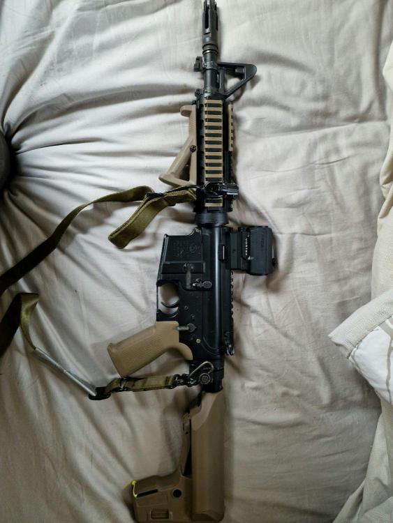 Hi all ive given up airsoft this year due to work and sold most of my rifs on but kept this just incase I started again. But I wont be. Here is the build list. Started life as a normal tm recoil. I have changed the stock to a genuine magpul one and pistol grip and has 4 real steel pmags converted by me and 1 normal 82rd. Internals have been completely changed. Btc mosfet non bluetooth Laylax pistol Laylax gears Laylax bushing Laylax cylinder Sorbo pad Eagle 6 spring and heavy recoil weight Laylax air nozzle Laylax pistol head Laylax tapper plate Fps spring guide Laylax tightbore Purple bucking and nub Probably a few other bits i cannot remember only thing orginal internal is the gearbox. Has since been looked after by my local tm recoil tech Not sure what its worth but want it gone ideally collection from Wiltshire as its in a large nuprol place.