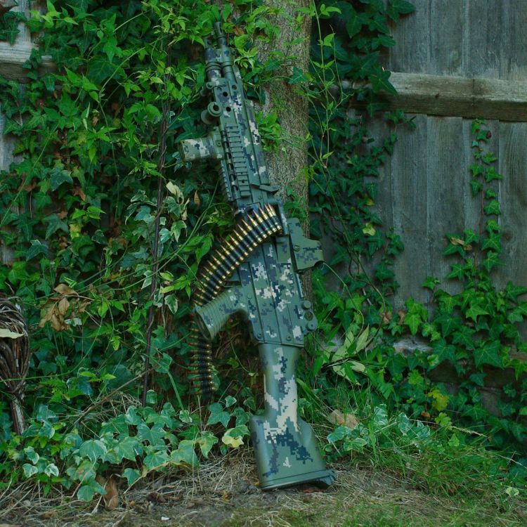 Picked up a cybergun 249 because it was going very cheap and promptly added a ton of crap onto it XD. Its honestly pretty ok for what I paid even if it is a plastic body. Ditched the bipod straight away though because it was total garbage and replaced it with a spare harris. Unfortunately the small cloth 249 box mags are hard to find and very expensive right now so I just went with an m4 sound control drum mag for the moment .1 point -
