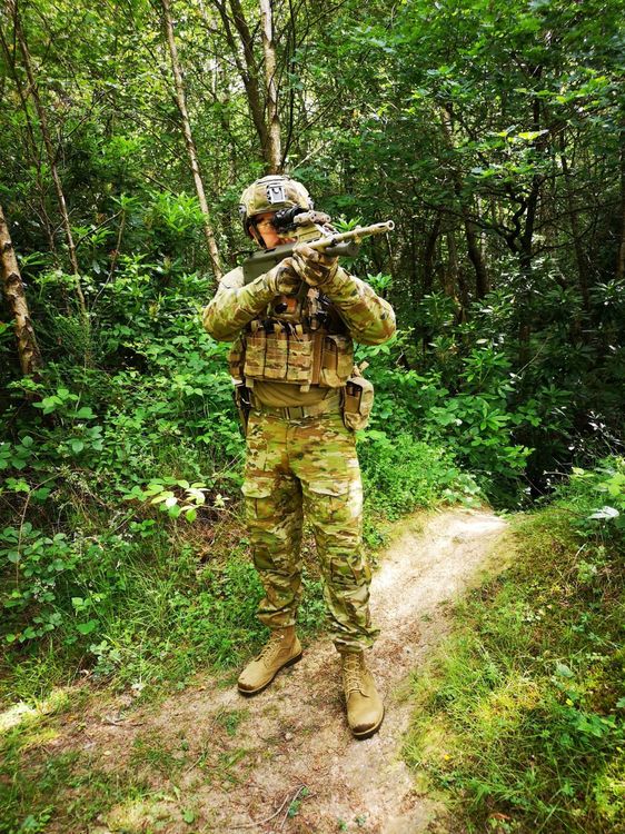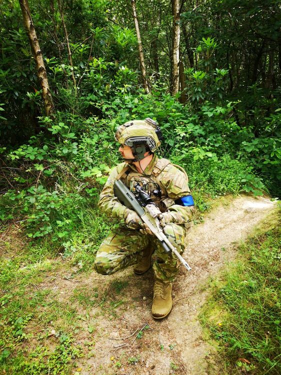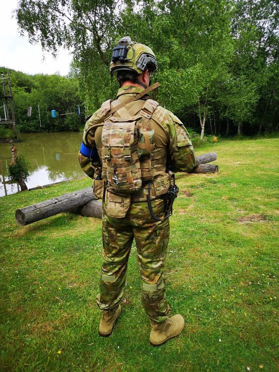 First outing of my Full AMCU (Australian Multicam Camouflage Uniform) kit. Based on Task Force Taji Rotation 2 in 2016. AMCU Shirt and Trousers, Redback Terra Boots, FMA Wendy Helmet with AMCU cover, Manta Strobe and FMA NVG box, Warrior DCS in multicam (in place of the rare TBAS carrier) with TBAS pouches. TBAS belt with various SORD/TBAS pouches and Bladetech Holster Mechanix Gloves Gats, JG based AUG with various parts added to make it look more like an F88SA2 Browning mk31 point -