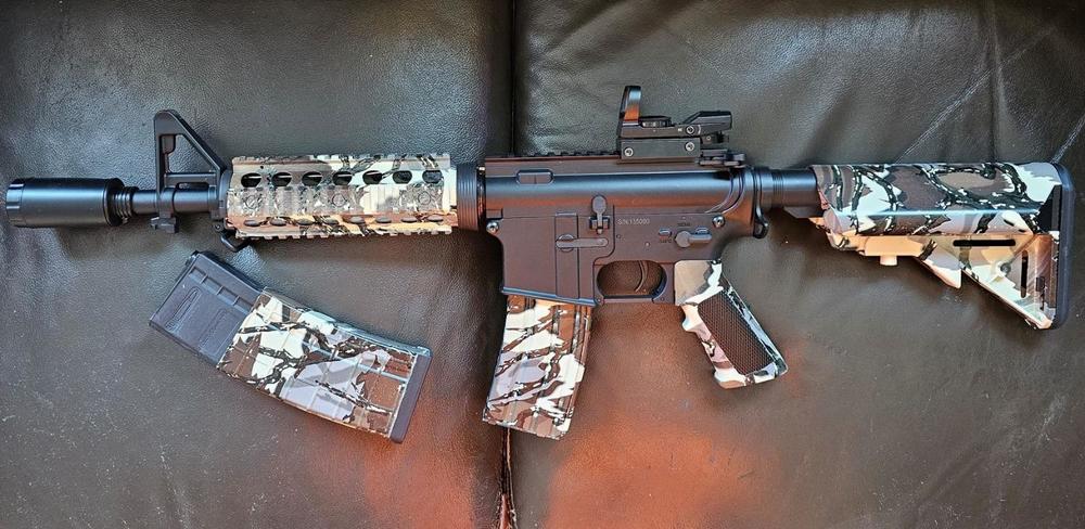 Been posting these old photos (around 2010-12) on social media then remembered they've never been on here either, only Arnies back in the day. The quality isn't a bug on the forum or anything, the images are just intrinsically that low resolution. Couple of iterations of my 14.5" NGRS back when I had the King Arms CASV. These days it has a carbon fibre handguard so it's just a tad lighter than the EGLM setup.1 point -