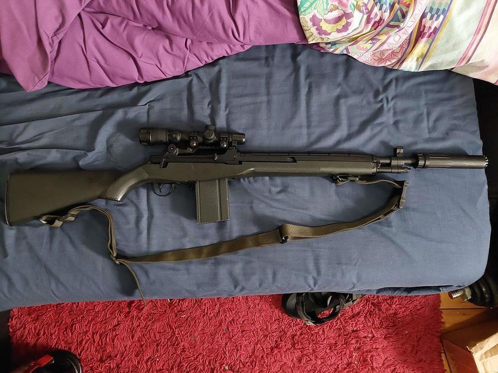 CQB gun. Cyma m14, but with a TM m14 stock. Not 100% on the optic mount at the moment because I know the Laylax mount doesn't work well with the Cyma receiver (had to use it; outer barrel didn't work with the TM receiver) and ends up being off by a fraction of a degree, meaning you can never zero the scope properly. Currently using the G&P scope mount as I want a low profile mount, but if that doesn't work like the Laylax mount doesn't, I know my TM scope mount will work, it's just a bit higher up. And no, I'm not joking. I will take this to CQB games1 point -