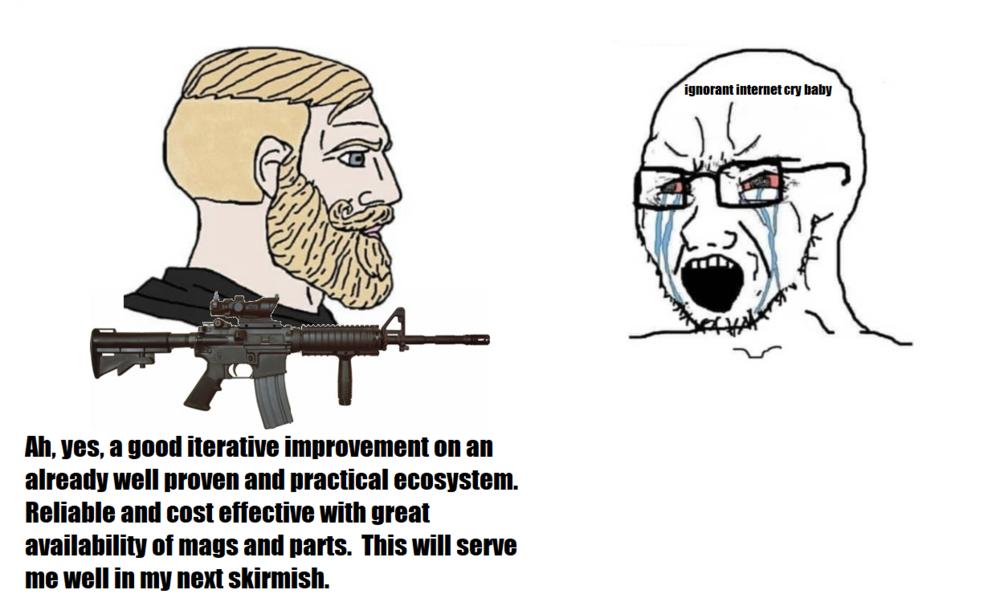 If only every big business would suicide itself by making the 1927 sub-variant of a sub-variant of an air training pistol used by a Belgian scout troop I once heard of in a story my grandfather told me in the 90s. Sorry man you don't get to complain and simultaneously be literally exactly the reason for the thing you're complaining about ? I'd say hundreds of thousands to get the production line going for a whole new gun, the injection mould for just 1 plastic part can cost many thousands. I've only just been noticing recently that some of the original all-plastic AEGs from around the turn of the millenium have been disappearing. I'm frankly shocked they've kept as many different models alive even in batch production for as long as they have.1 point