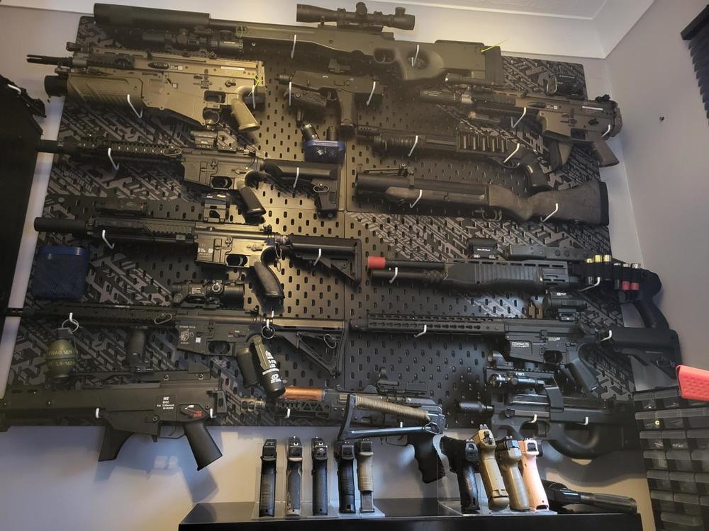 Some real police setups that spring to mind; I've never persued such a setup for my airsoft kit so I've no idea how to make it happen but anything is possible with glue and/or 3d printers. HOWEVER, that's a lot of faff and just not having a stock/only using a folded stock in the folded position is quite possibly a much better option, particularly since our gats have no recoil, huge magazines and every shot is an instant tracer.1 point