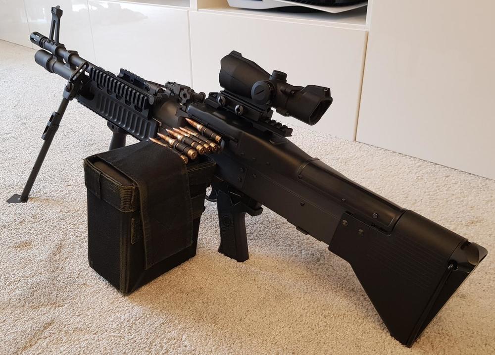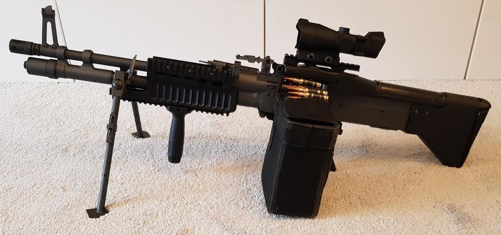 Spent a good deal of time recently converting my A&K Mk43 Mod 0 into a Mod 1 by installing a new railed top cover, railed front handguard and M60 birdcage flash hider. None of the parts fit without modification so it was quite painful! Still, pleased with how it's looking. It's not quite done yet, I'd quite like to change the finish of the receiver, barrel and gas tube to be a darker grey or black. And an authentic Mod 1 style top cover would be fantastic, if only anyone had ever made an airsoft version!1 point