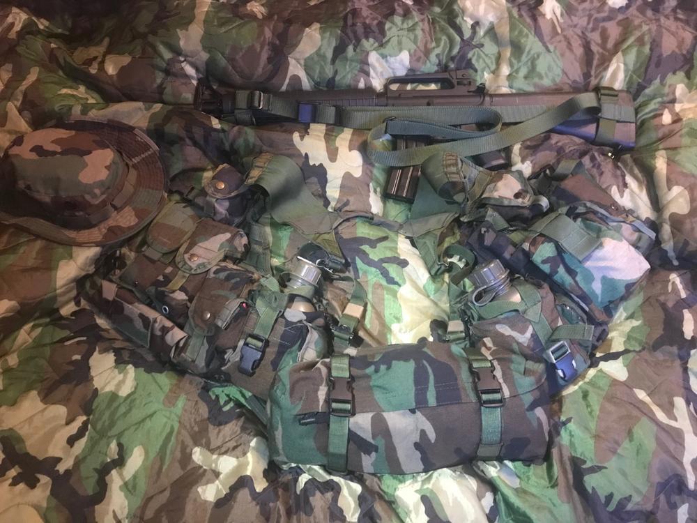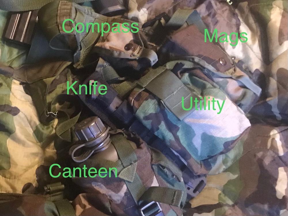 Sample molle 2 load out based on early issue setup. There are several proscribed kits in the manual but recipients seem to have ignored them from the get go. ? This load out is based on a full molle set rather than the hybrid Molle/Alice/IIFS that was first seen in active service. Rifle M16a2 with an after market three point sling. Vest chassis FLC. Adjusted so most of the load sits on the waist belt. The front mag pouches are set high to make prone shooting easier. Back in the day rifle mag pouches are often seen sat above each other as there are a lot of molle rows. RHS: Frag pouch with compass Double magazine pouch Medical pouch as utility Bayoney/knife 1 quart canteen LHS: Frag CQB mag 2x double mag 1 quart canteen Dump pouch is a modern add on for skirmishing. A leg bag would be more common at this time. Waist pack on rear with a bit of snivel gear & 24hr sustainment. In period pictures the canteen pouches are often worn further forward as utility pouches or simply for access. The set up allows for eight plus one mags carried, so one pouch could be for a MK18 smoke. In early TAP setups triple singles were commonly run behind the mags so troops are carrying 12-16 magazines on the vest. Example from operations in Iraq. Armour carrier with canteen forward and bandolier on the upper chest. The issue sling has been modified to fit the side of the stock and somewhere around the delta ring. The knuckle duster is optional.2 points -